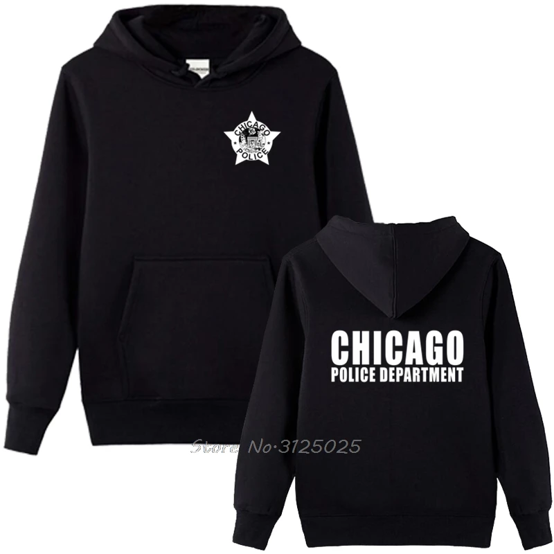 Толстовка мужская флисовая с капюшоном, свитшот с надписью полиция Чикаго, уличная одежда, смешные худи в стиле Харадзюку