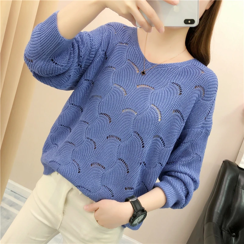 Модные осенние женские тонкие свитера 2020, новые свободные пуловеры с круглым вырезом, Вязанный свитер, сексуальный синий розовый джемпер