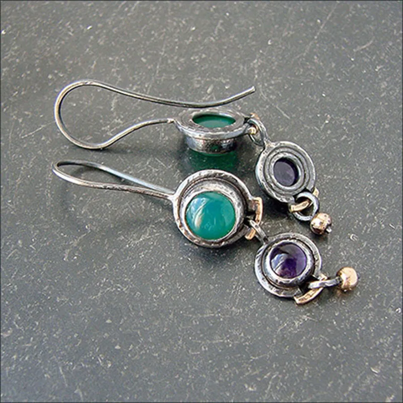 Очаровательные маленькие круглые зеленые серьги с фиолетовыми камнями для женщин и девочек, этнические черные золотые металлические бусины, изящная серьга, ювелирные изделия