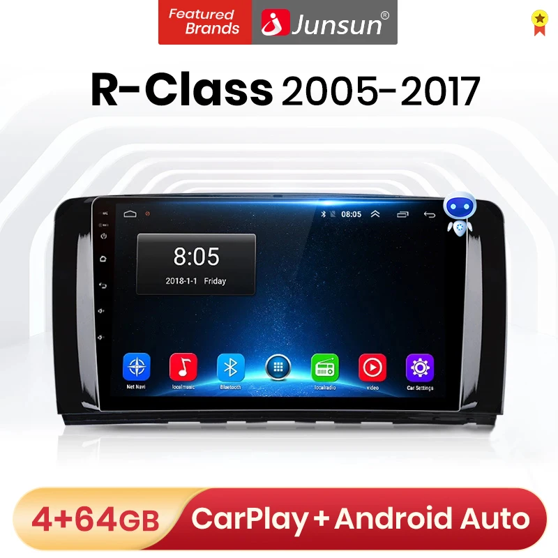 Junsun V1 Pro 4G Android 10,0 4G + 64G Автомобильный Радио мультимедийный плеер для Mercedes Benz R-Class 2005-2017 GPS навигация no 2din dvd