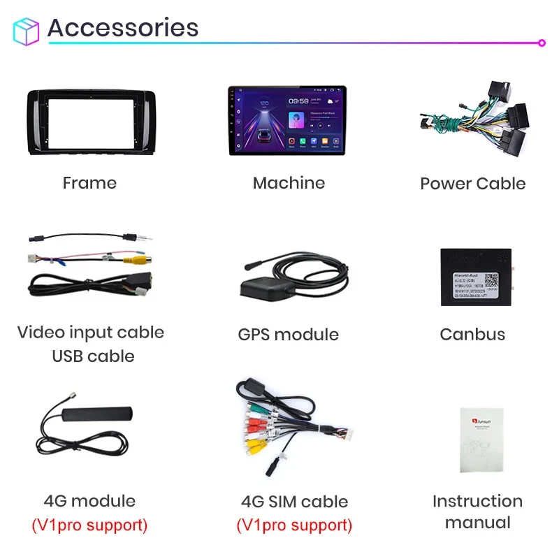 1. Штифт-штифт: Кабель питания Junsun radio' является штифтом для штифта, прост в установке;2. Встроенный Carplay/ Android Auto: Поддержка версии V1Pro, просто используйте кабель телефона, подключите его, стабильный и простой в использовании; (V1 поддерживает только Android Auto, но нужно покупать; V1C не поддерживает)3. Поддержка подголовника: только поддержка версии Junsun V1;