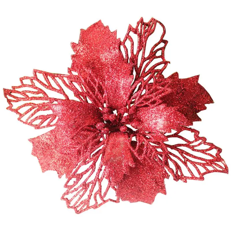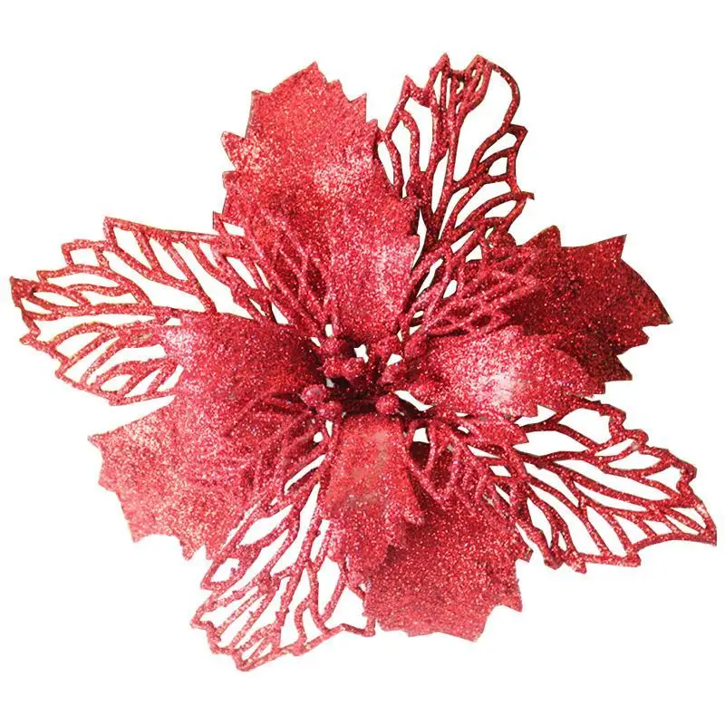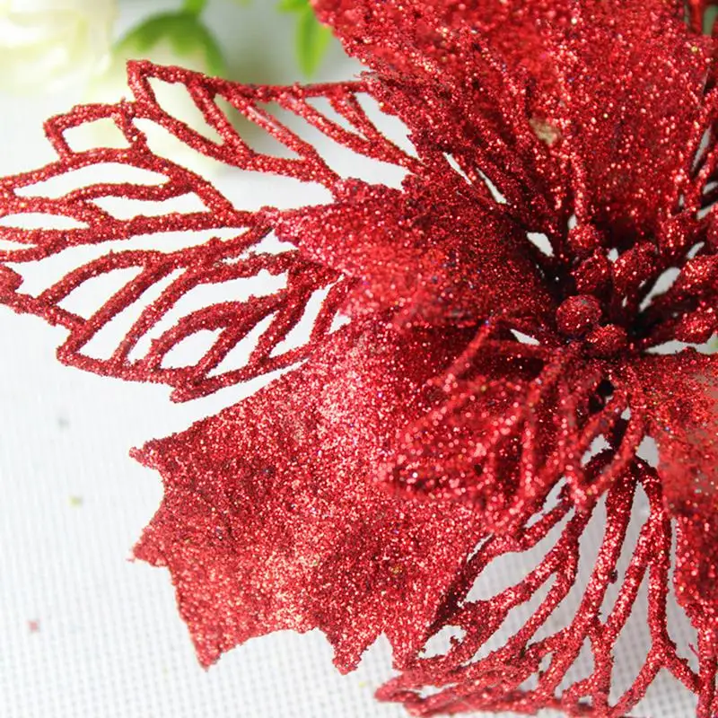 1 шт., новогодний цветок Искусственные с блестками, аксессуары для украшения рождественской елки, реквизит для фотографий