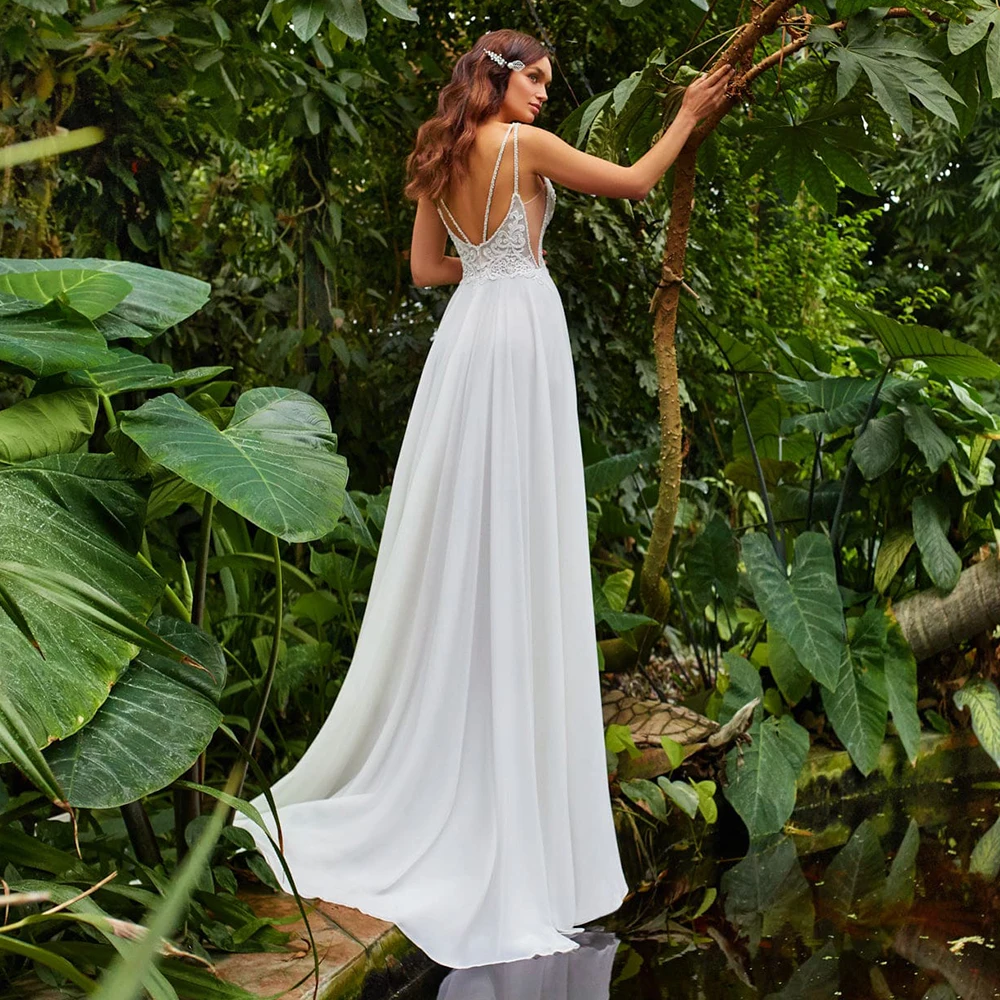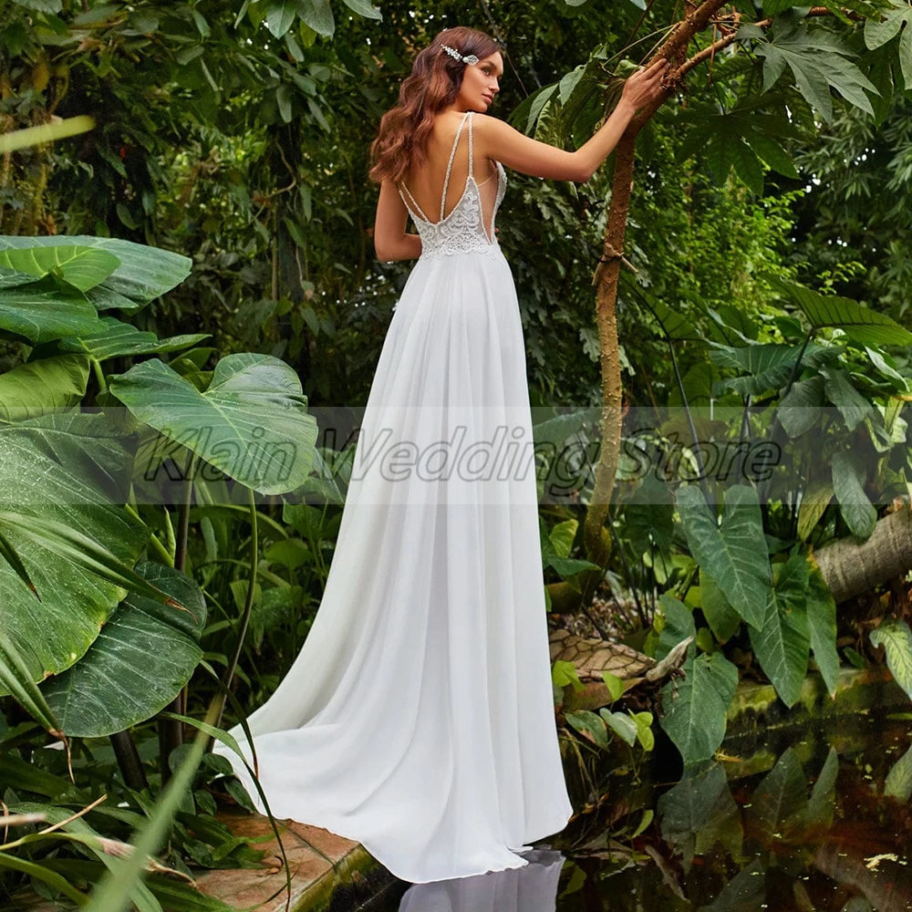 Сексуальные свадебные платья-трапеции с Боковым Разрезом, богемное Бисероплетение, на бретелях-спагетти, без рукавов, Кружева Аппликации с открытой спиной