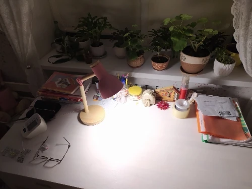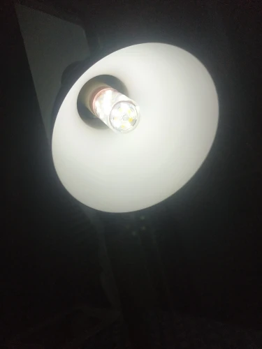 Лампа небольшая, думали, что будет бОльшего размера. У той, что мы выбрали, с меняющимся светом, цвет освещения изменяется при помощи кручения лампочки, мощность, кстати, так себе, хотелось бы поярче. Жаль, что сама голова не меняет наклон, для кропотливой работы это важно. Возможно, что из-за этого будет не совсем хороша для моих целей, проверим) Качество достойное.
