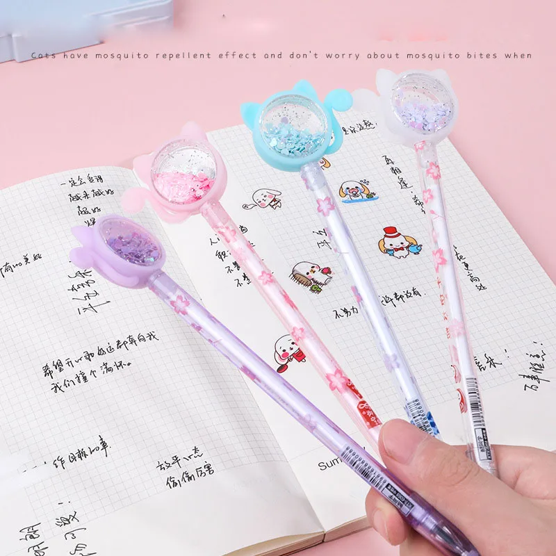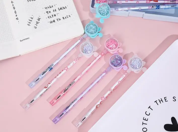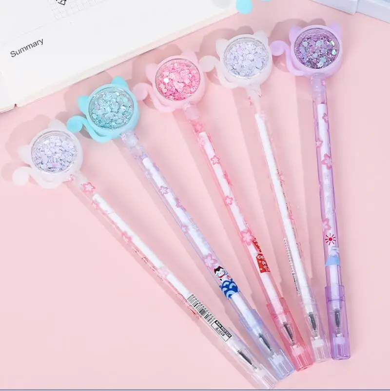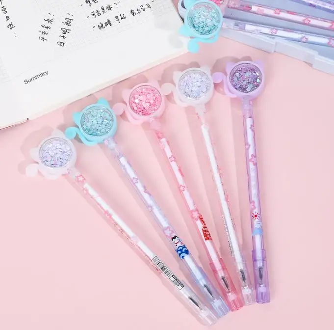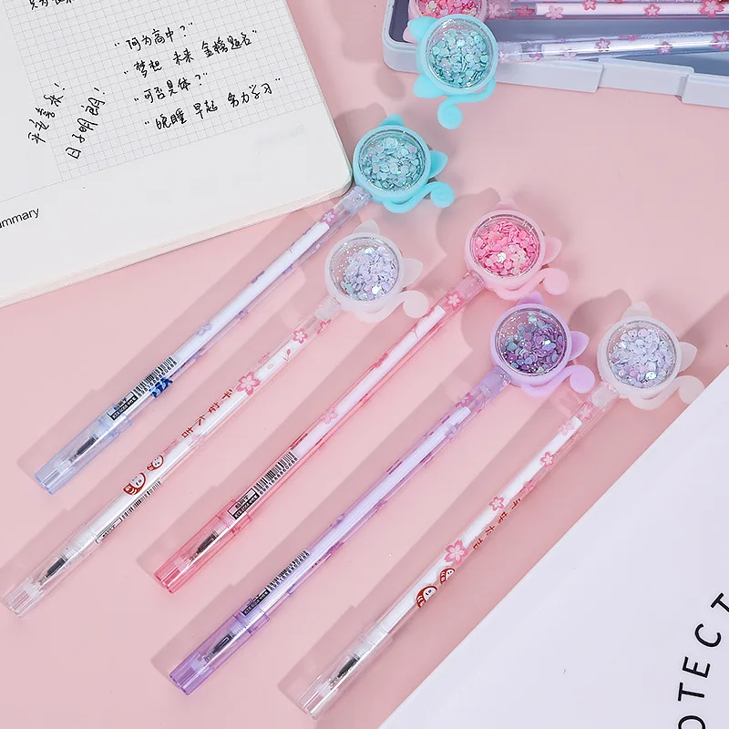 36 шт.лот, гелевая ручка с блестками для кошек, кавайная канцелярская Милая ручка, новинка, кавайная ручка, черные чернила, гелевая ручка для письма, Обучающие канцелярские принадлежности
