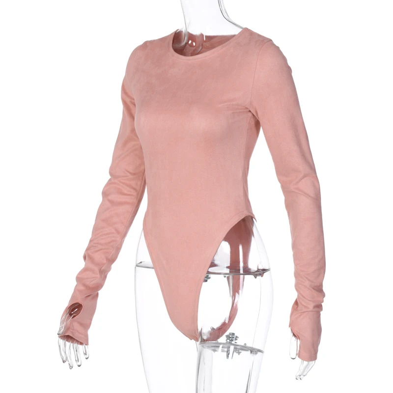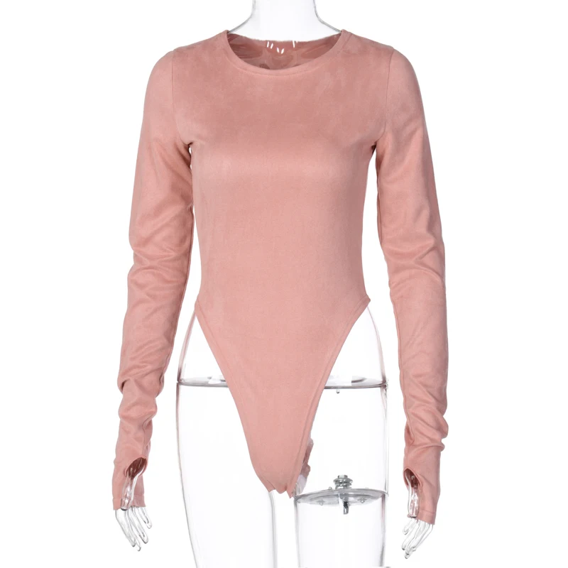 Женское боди из замши, с круглым вырезом и длинным рукавом, повседневное однотонное боди цвета хаки, на осень и зиму, 2020