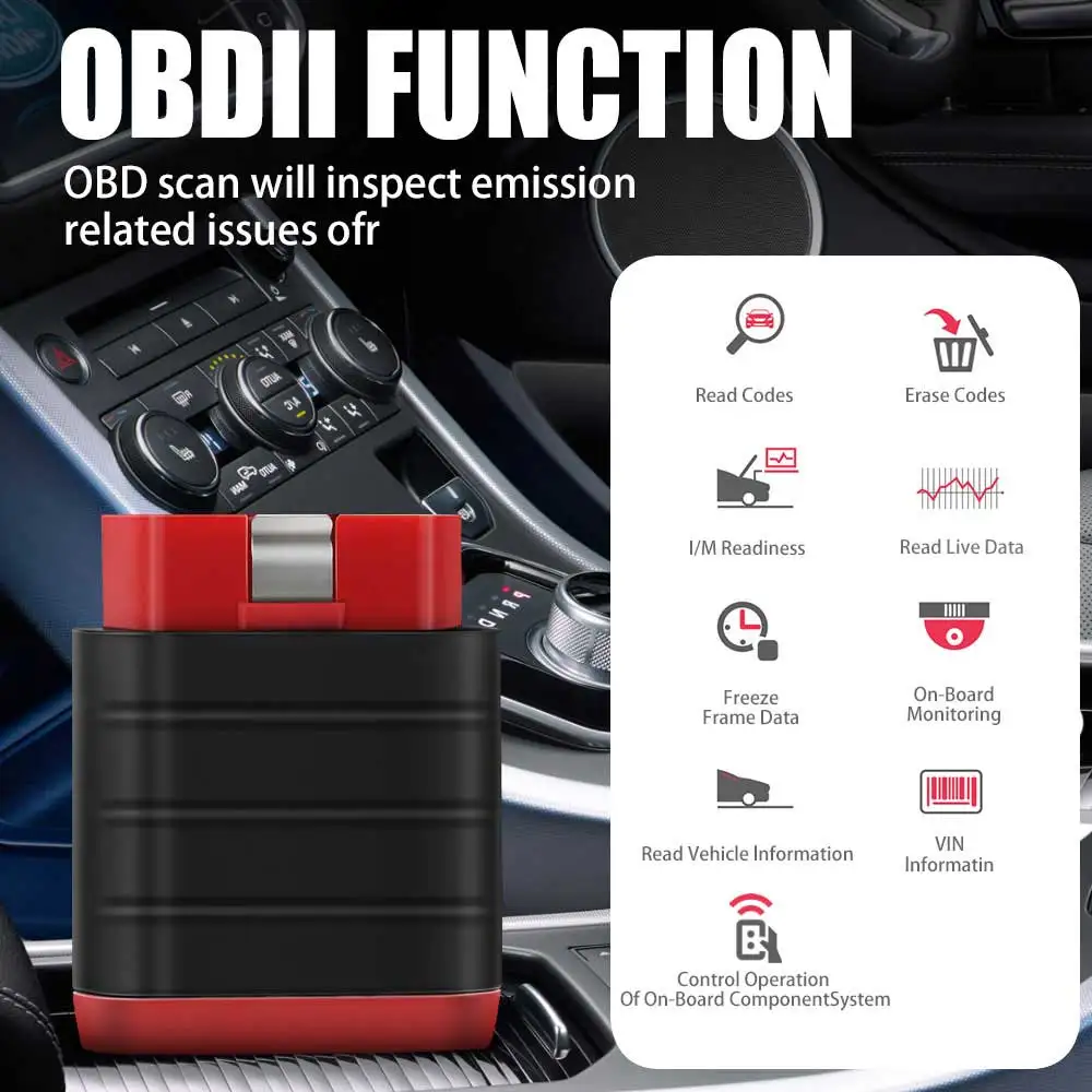 Полные функции OBDII и EOBD● Данные в реальном времени, MIL, IM мониторы● Данные кадра замораживания● Сохраненные DTCs●Clear DTCs● Испытания для мониторинга O2● Результаты тестирования для систем непрерывного и непрерывного мониторинга● Ожидаемый DTCs● Контроль запроса бортовой системы или компонента● Запрос вин и других данных● Постоянный DTCs