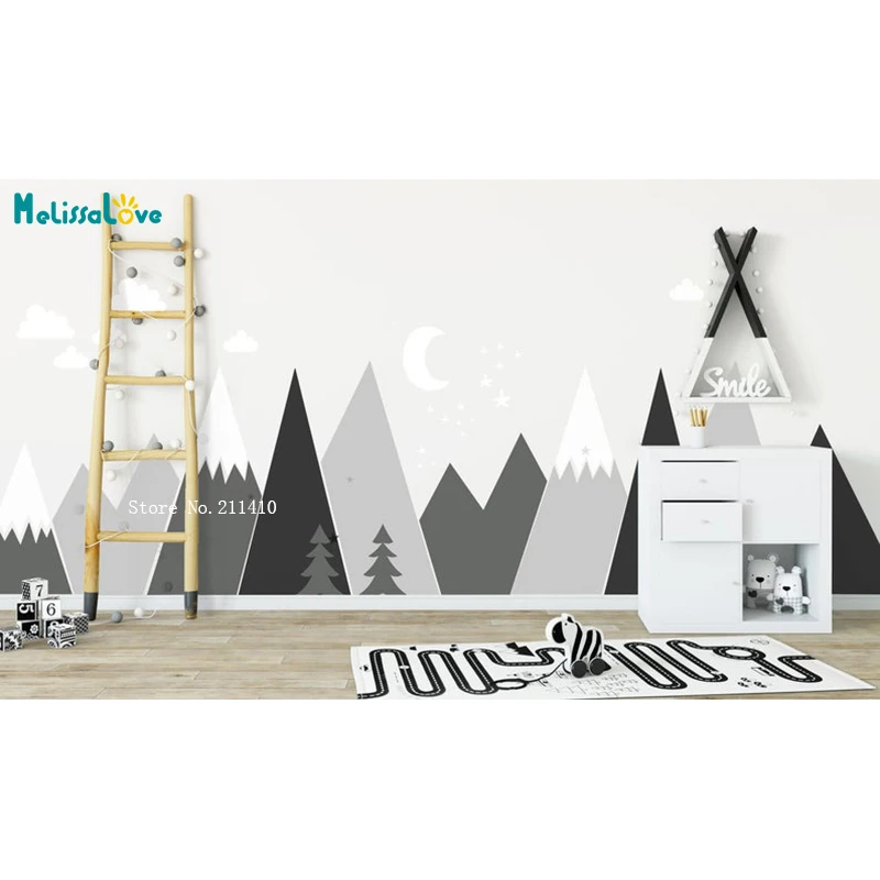 Настенные наклейки с изображением гор и леса, детская комната, детс...