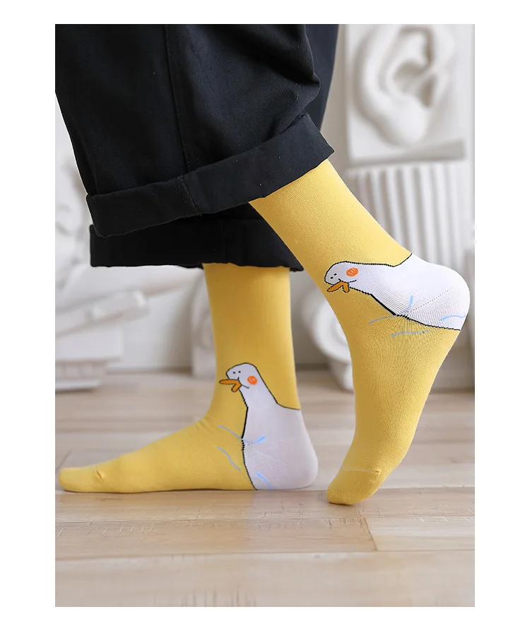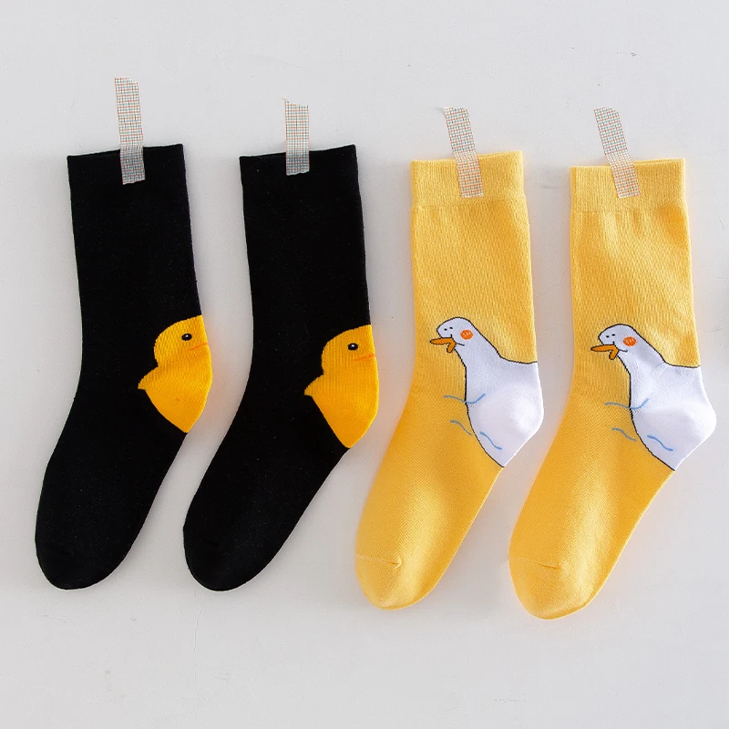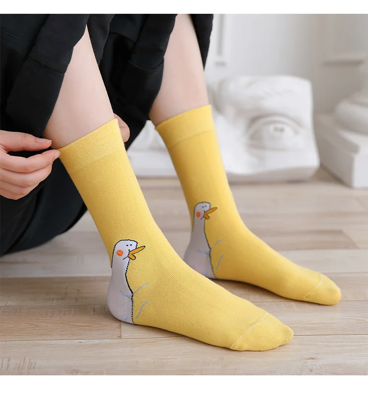 высокие носки женские харадзюку корейский стиль японский стиль длинные хлопок Милые носки с изображением утки и животных из мультфильма, женские носки, кавайные носки в стиле Харадзюку, женские носки, носки