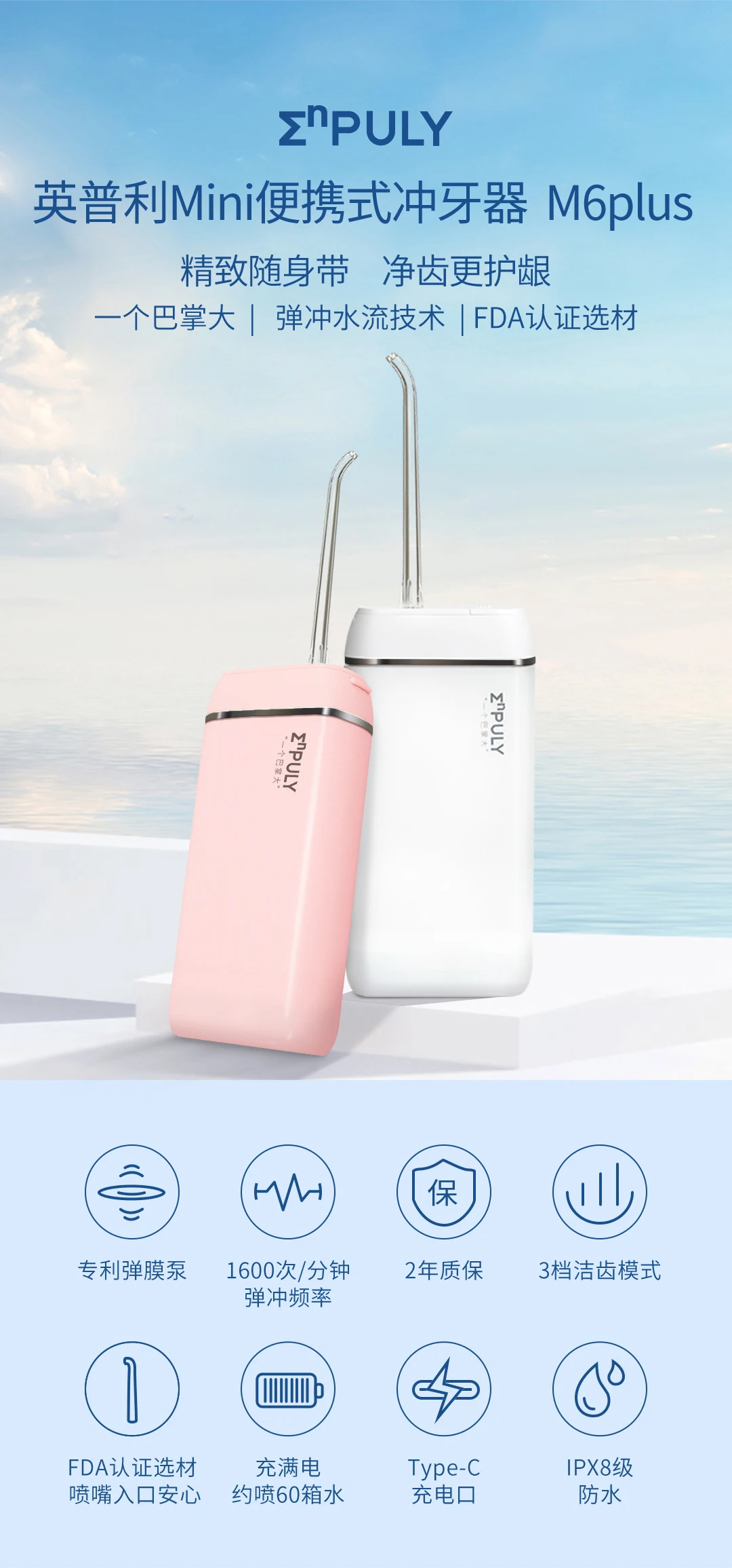 Электрический ирригатор для полости рта Xiaomi ENPULY Plus IPX8, водонепроницаемый портативный смыватель воды, уход за зубами, емкость для воды 130 мл, трехскоростная модель