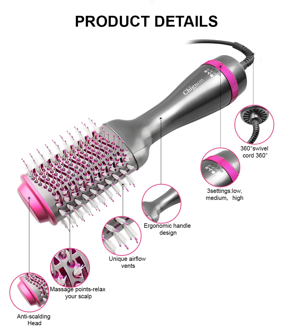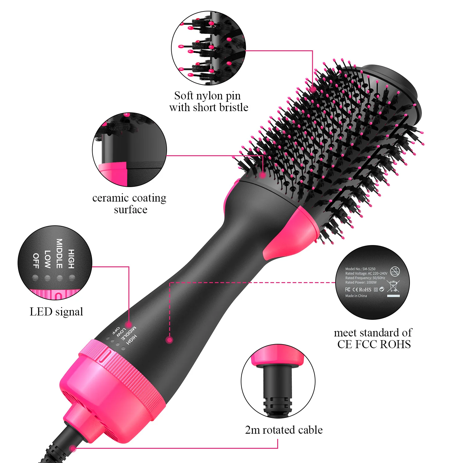 Одношаговый фен и объединитель 1000 Вт вращающаяся щетка горячего воздуха Профессиональный фен гребень щетка электрическая ионная фен щетка