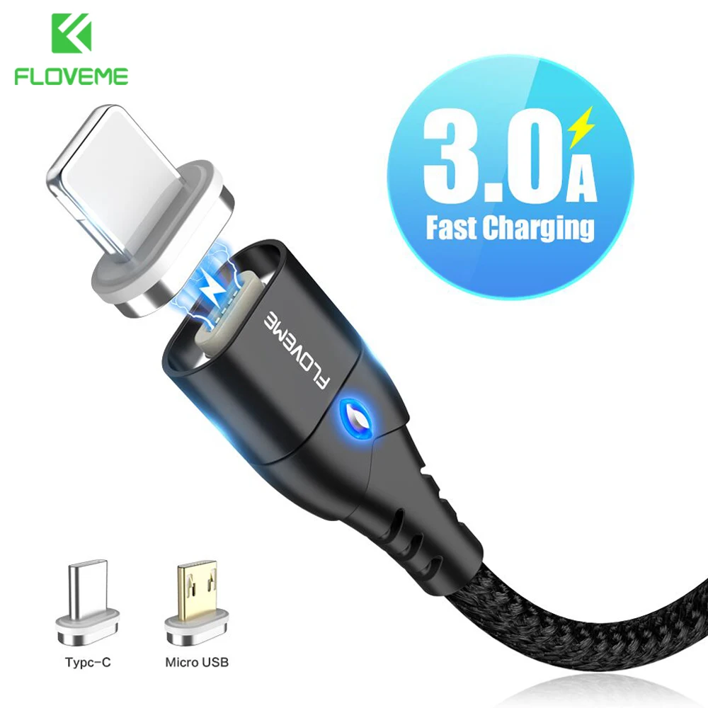 FLOVEME 3A Магнитный кабель магнитная зарядка Micro usb type C Быст...