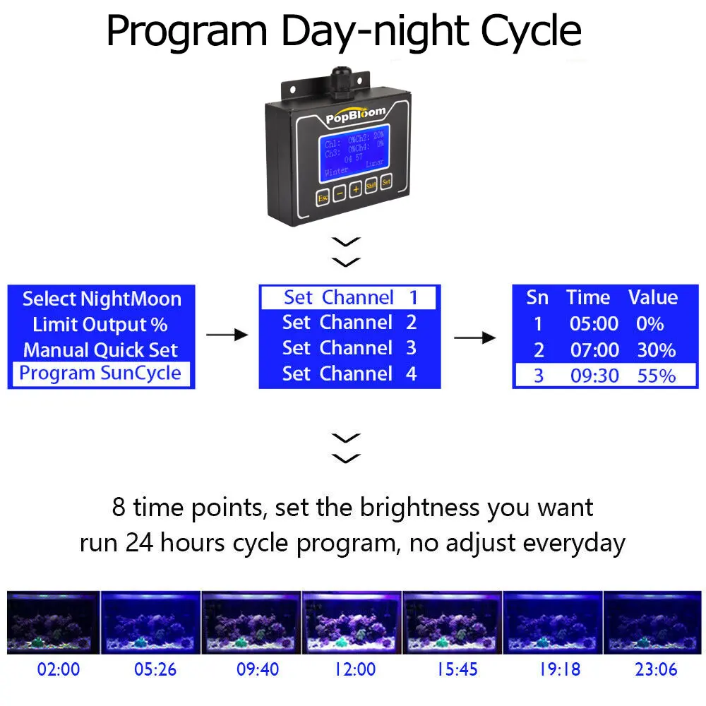 Умный светодиодный светильник PopBloom для аквариума, осветительный прибор для морского аквариума с контроллером заката на рассвете