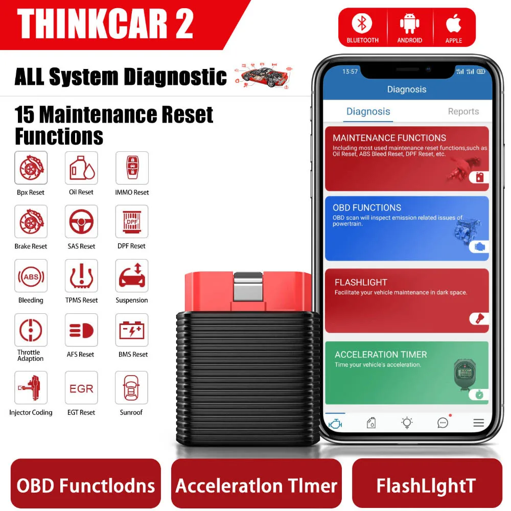 Оригинальный сканер Thinkcar 2 ThinkDriver с полной системой OBD2, поддержка ABS SAS, услуги сброса для iOS, Android