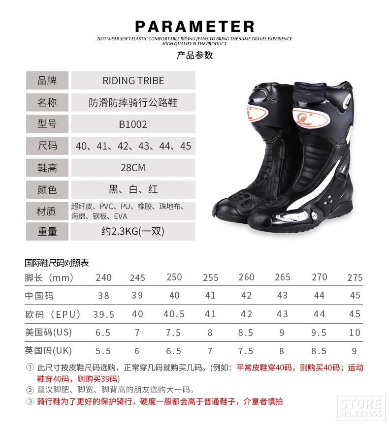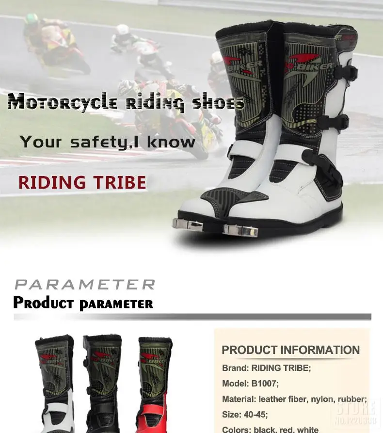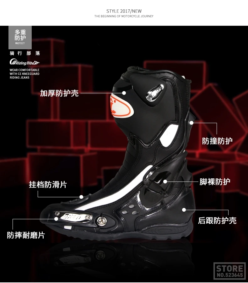 Это набор гонок, сапог для отдыха, как одна из функций транспортного средства. Высококачественная резиновая подошва, специальные материалы для защиты от столкновений, эффективная защита езды.Особенности:1. 2,0 износостойкая однопарная кожаная, прочный и 2 раза кожа2. Износостойкая Нескользящая конструкция сдвига3. Антиударное устройство специальные материалы, эффективная защита4. Новый эластичный кондиционер, легко носить5. Конструкция вентиляции гарантирует комфорт при езде6. Волшебная регулировка лодыжки7. Светоотражающий износ пояса, с высокой светильник, светоотражающая текстура, легко ездить ночью в дождливый день