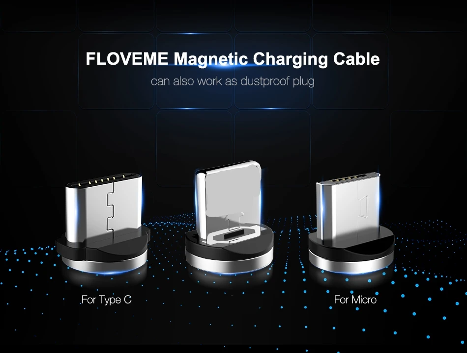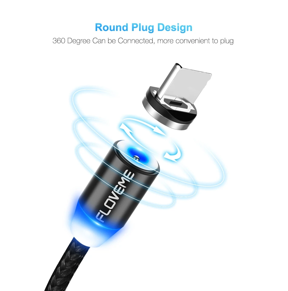 Feature 1360 Degree Rotate Round Magnetic Cable For Lightning/Micro/USB C Cable