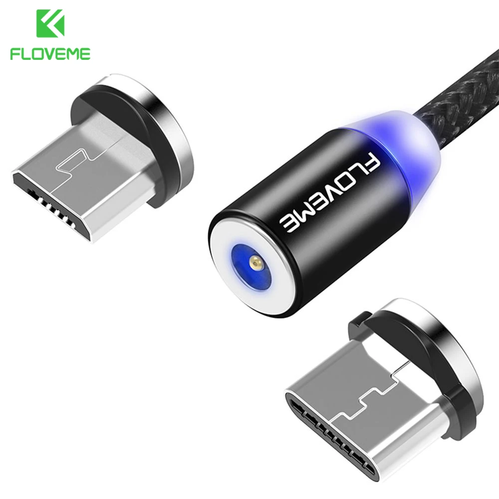Магнитный USB-кабель FLOVEME, светодиодный кабель Micro USB Type-C 2A для Samsung A51 A71 S20 мобильный телефон, шнур для быстрой зарядки, Магнитный провод для передачи данных