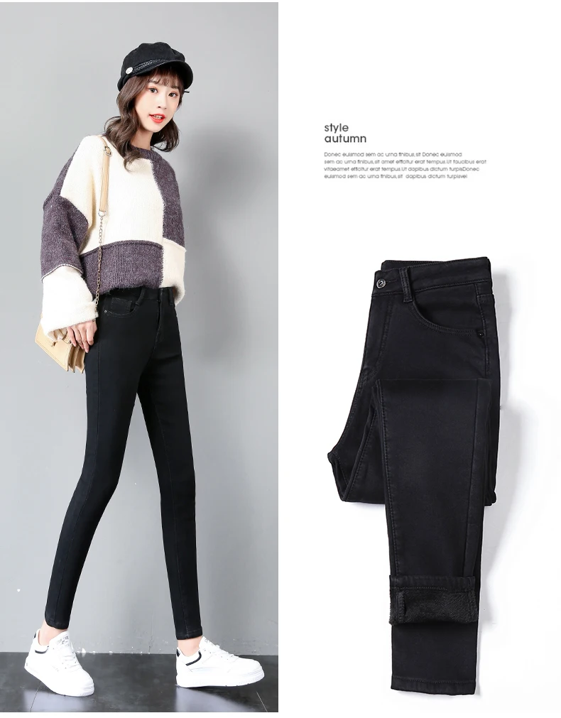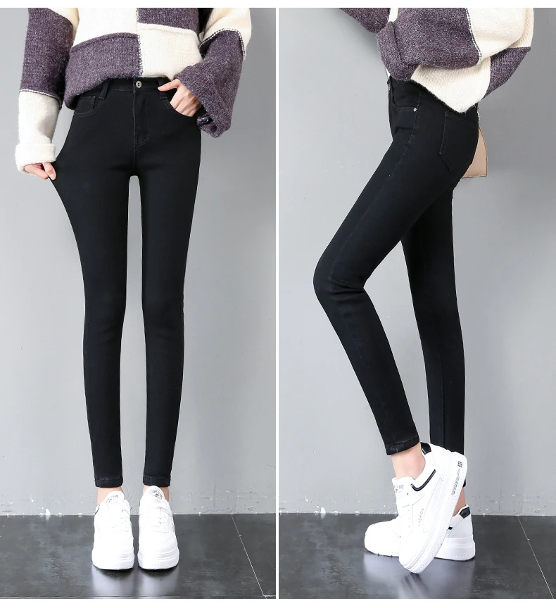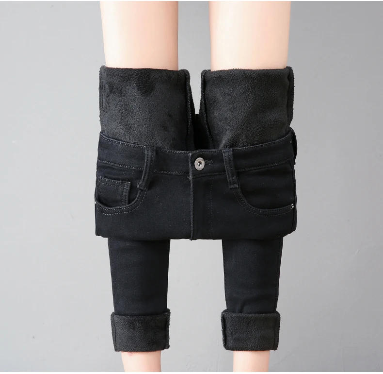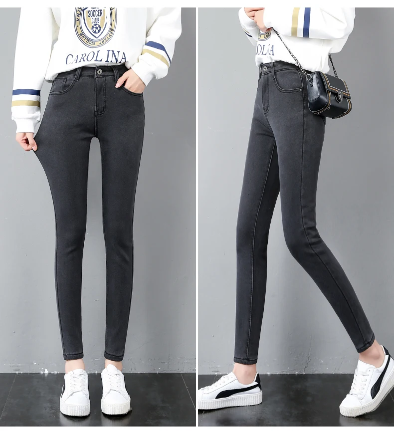 Джинсы женские зимние, черные, синие, серые, с высокой талией, элас...