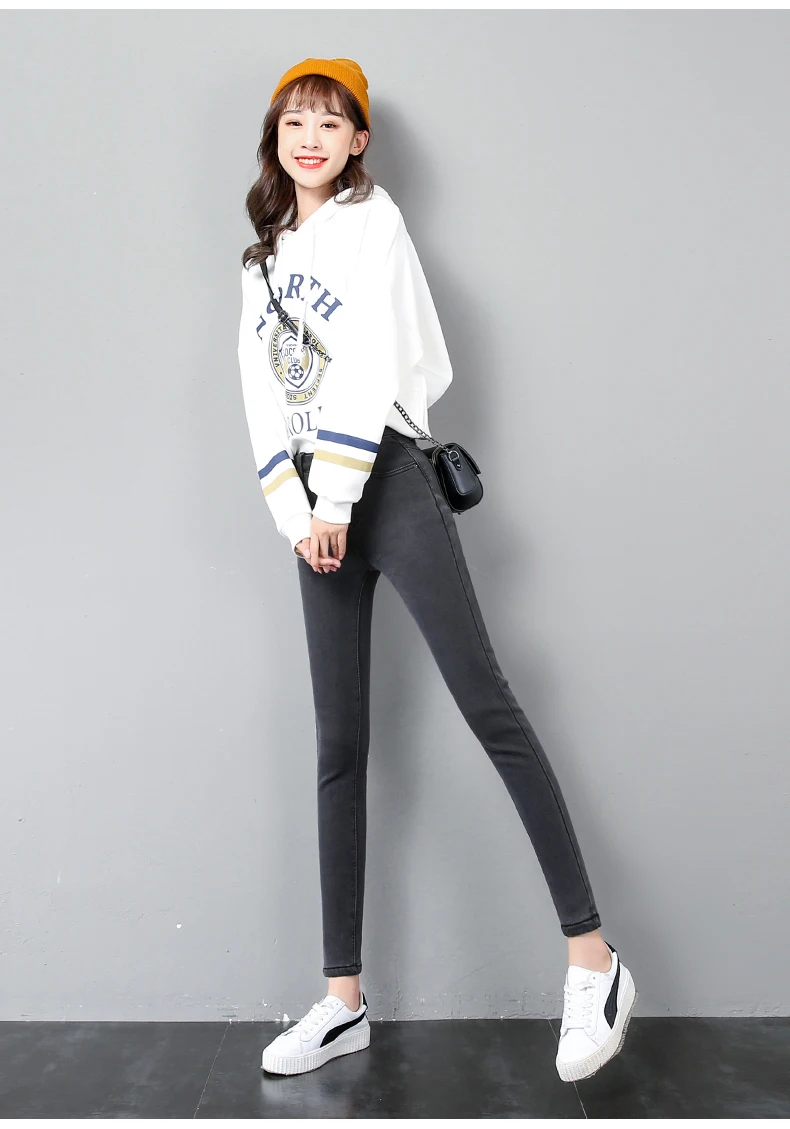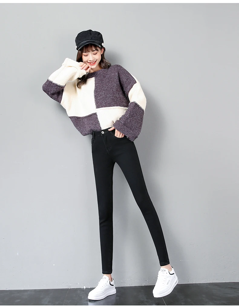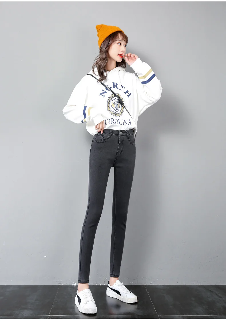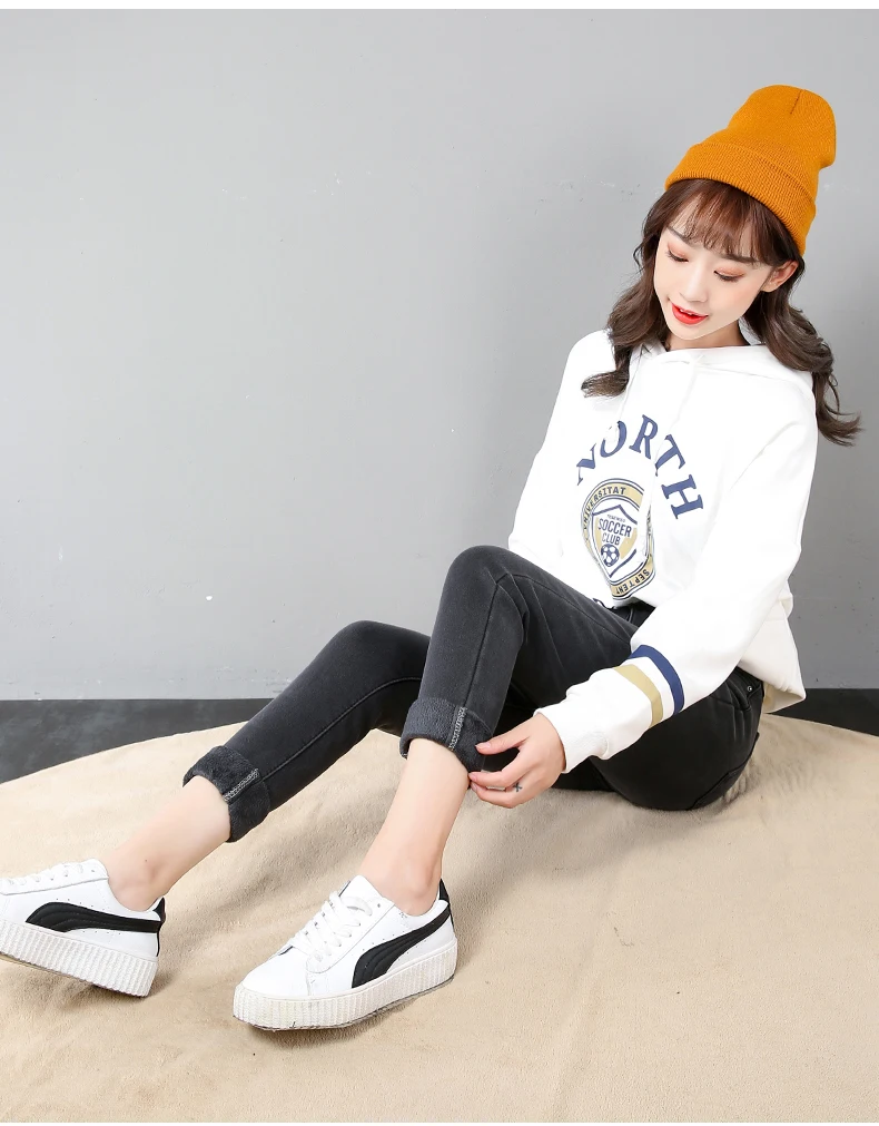 Джинсы женские зимние, черные, синие, серые, с высокой талией, элас...