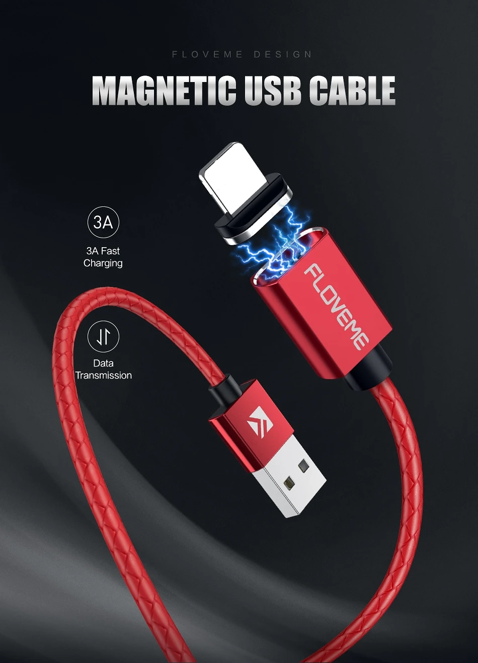 2. Характеристики: 3А (макс.) Быстрая зарядка + светодиодный индикатор + сильный магнит + передача данных