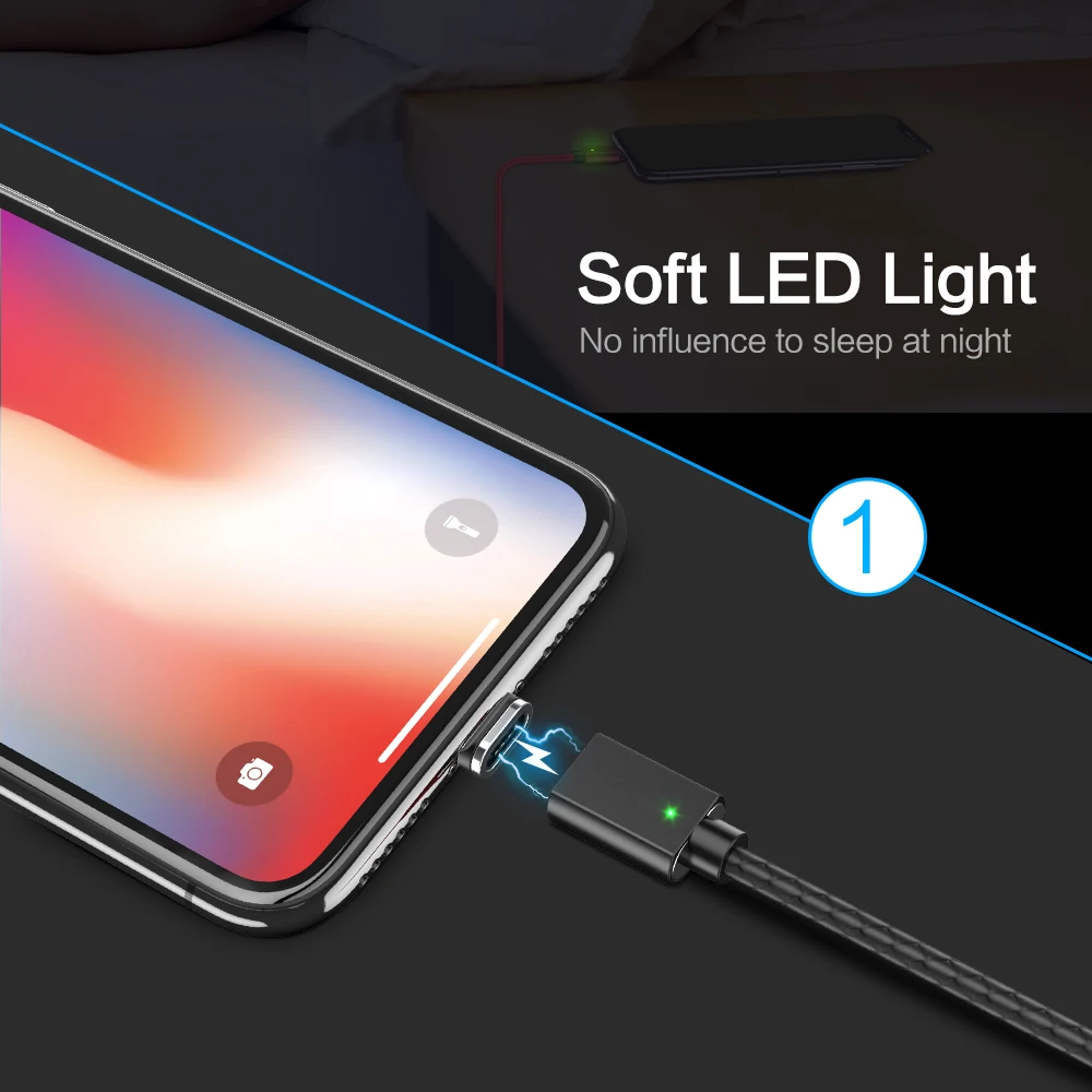 Feature 2Nylon Braided+Power Protection+LED Indicator Magnet Cable