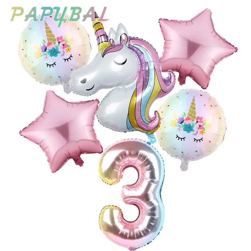 Воздушный шар в виде единорога, градиент, 32 дюйма, 6 шт.лот, цифра...
