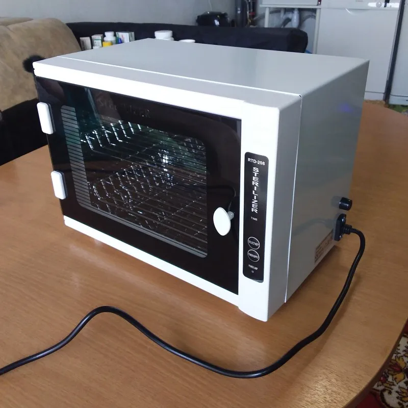 Заказан 12 марта 2021 г. , получен 20 марта. В Новосибирск, Россия. Упаковка отличная, ничего не помято, внутри воздушные подушки и пенопласт. Важный параметр описываю - внутренняя камера габариты - Ширина 26, высота 18, глубина 17. Включила - работает, за полминуты уже начало пахнуть озоном, как дверку открыла. Дверка на магнитной защёлке, открывается и фиксируется закрытая очень комфортно. Это лучший стерилизатор, что у меня был. Причём у этого же продавца продаются запасные/сменные лампы для прибора. Прям очень рекомендую - лучшая штука для семьи впринципе. Я предполагаю что даже кроссовки можно по одной штуке ставить и стерилизовать при необходимости :)