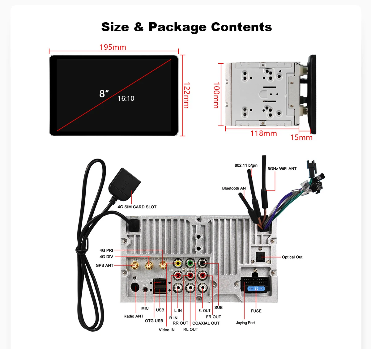 Автомобильная магнитола Joying, 2 Din, Android 10, 8 дюймов, универсальная магнитола, магнитола, центральный мультимедийный проигрыватель, HD 1280*800