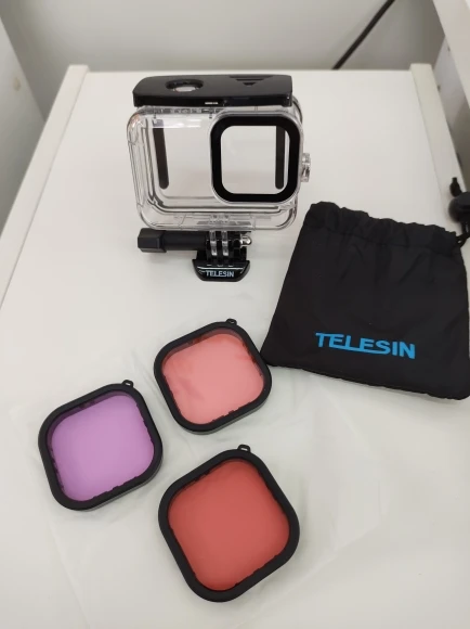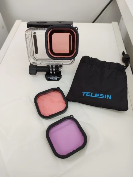 Для Gopro 9, Telesin-это бренд, который предлагает качество по справедливой цене, корпус очень хороший, фильтры помещаются в корпус без необходимости открывать или вынимать камеру, это хороший продукт, чтобы защитить карандаш и иметь возможность погружать его более глубоко.