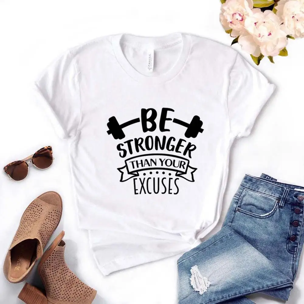 Женская футболка с принтом Будьте сильнее, чем ваши отговорки, хлопковая Повседневная забавная Футболка для леди Юн, топ для девочек, хипстерский FS-145