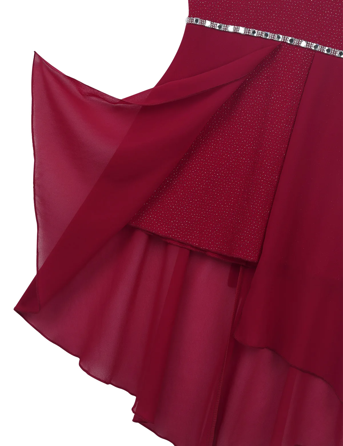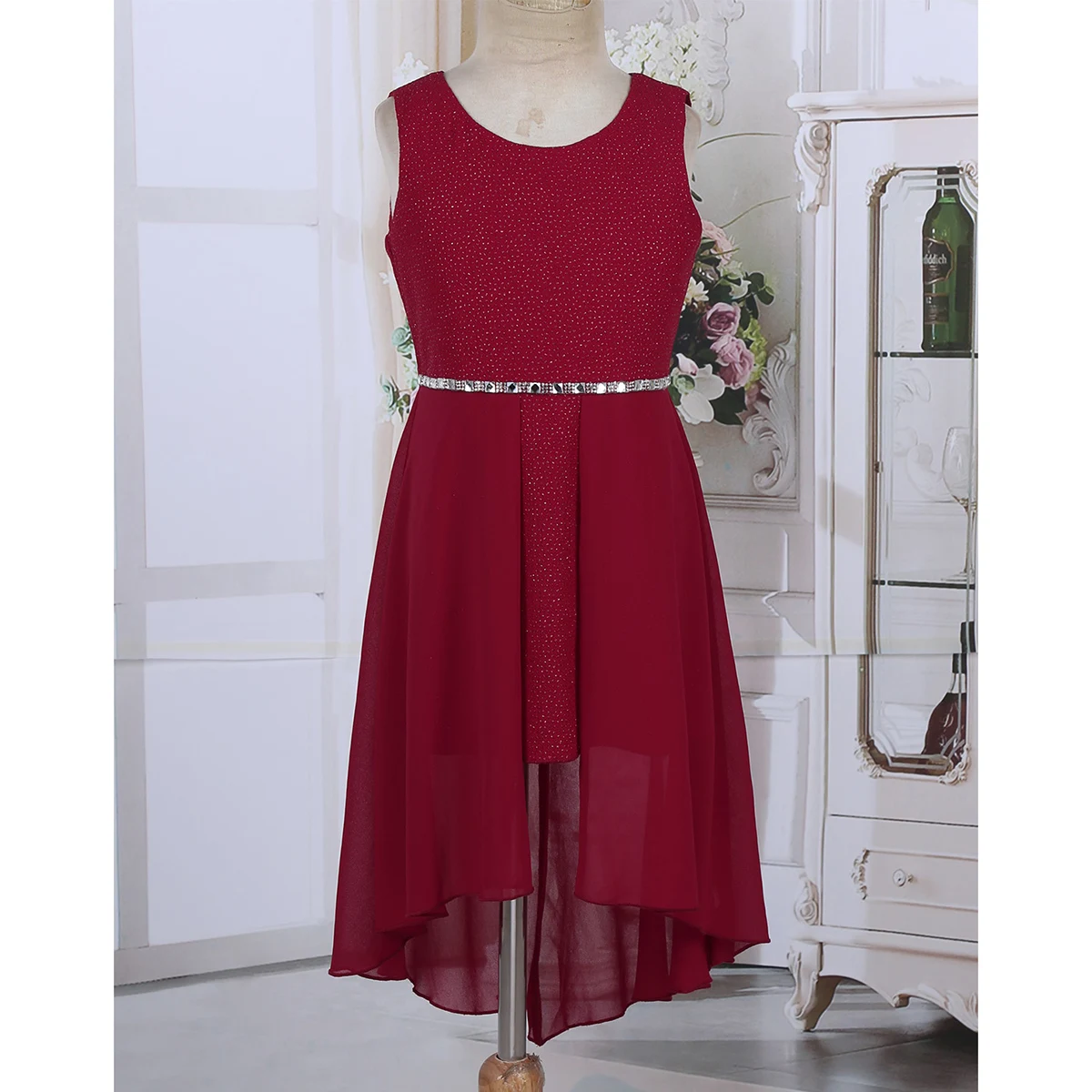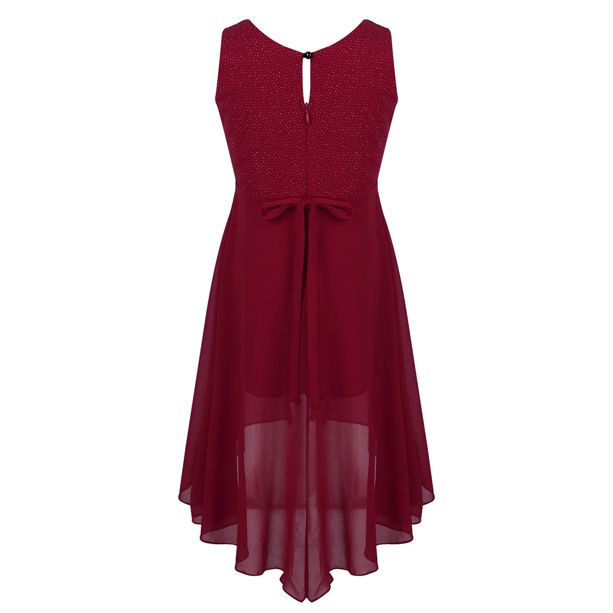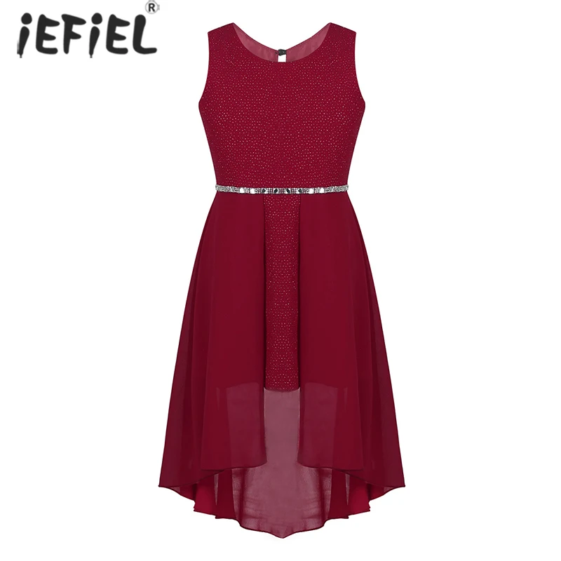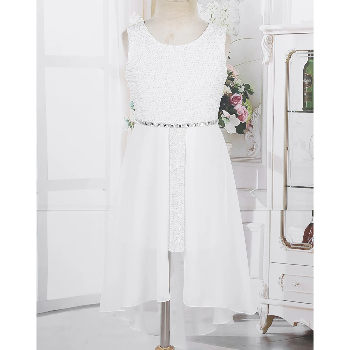Детское платье для девочек без рукавов, к требованиям заказчика; Сверкающие стразы на талии с высоким уровнем Асимметричный Подол платье для празднования дня рождения, платье с рукавом Вечерние повседневное короткое спереди и длинное сзади длинное платье