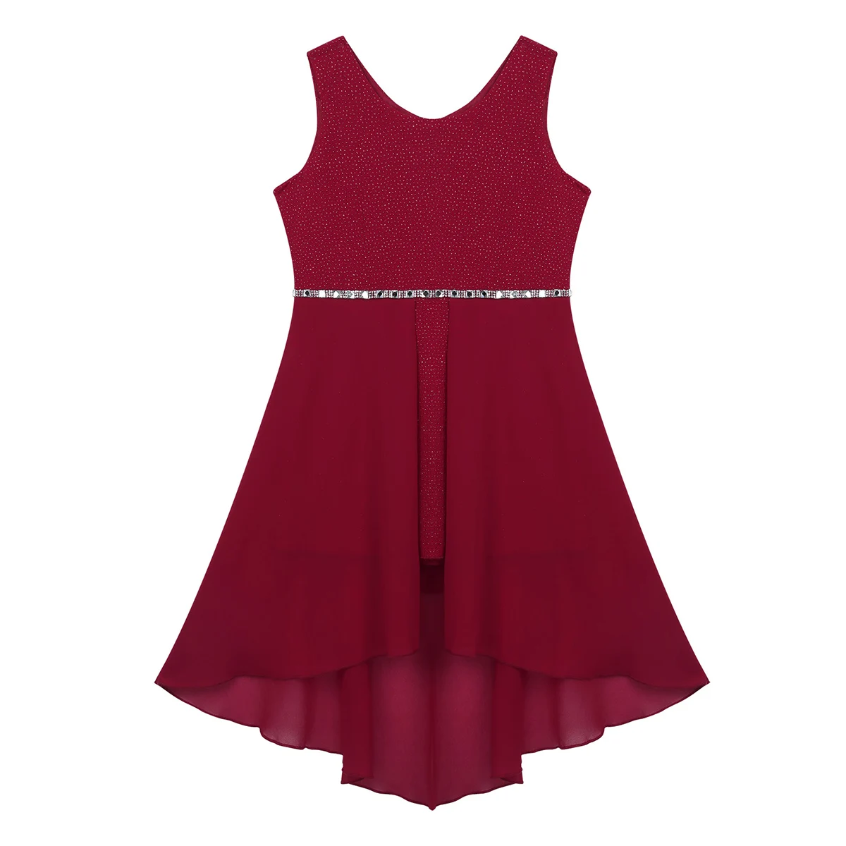Особенности:Платье изготовлено из полиэстера и шифона, ручная стирка.Таблица размеров означает возраст для девочек, но только для общего руководства.Без рукавов, Круглый воротник с застежкой, с высокой талией дизайн, украшенный к требованиям заказчика; Сверкающие стразы спереди, с заплетенной лентой сзади.Скрытая Центральная застежка-молния сзади. 1 слой с высоким и низким подолом, шифоновая накладка, прикрепляемая к талии. Платье с блестками для вашей девочки.Идеально подходит для лета, вечерние, дня рождения, праздника, повседневной носки и т. д.