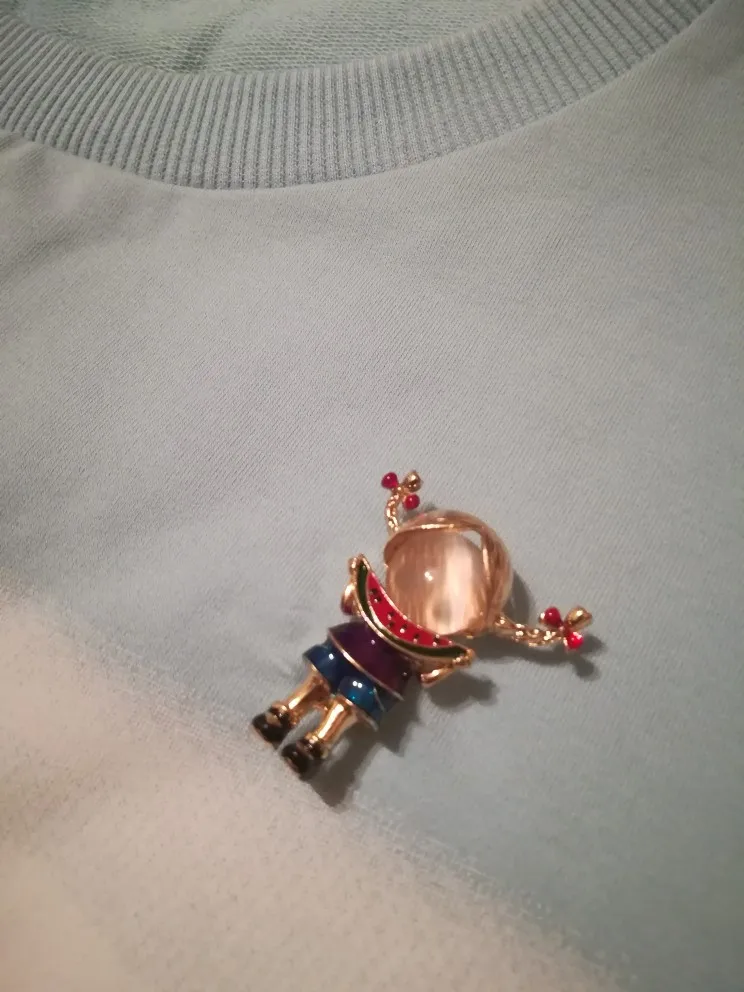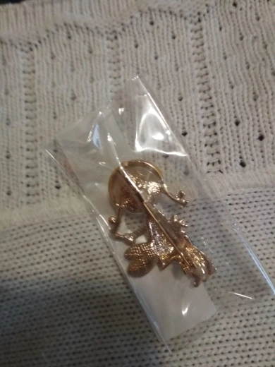 хорошая брошка. пришла быстро. хорошо упакована. очень милая, точно как на фото. сзади есть петелька, можно использовать как подвеску. отслеживалась полностью.