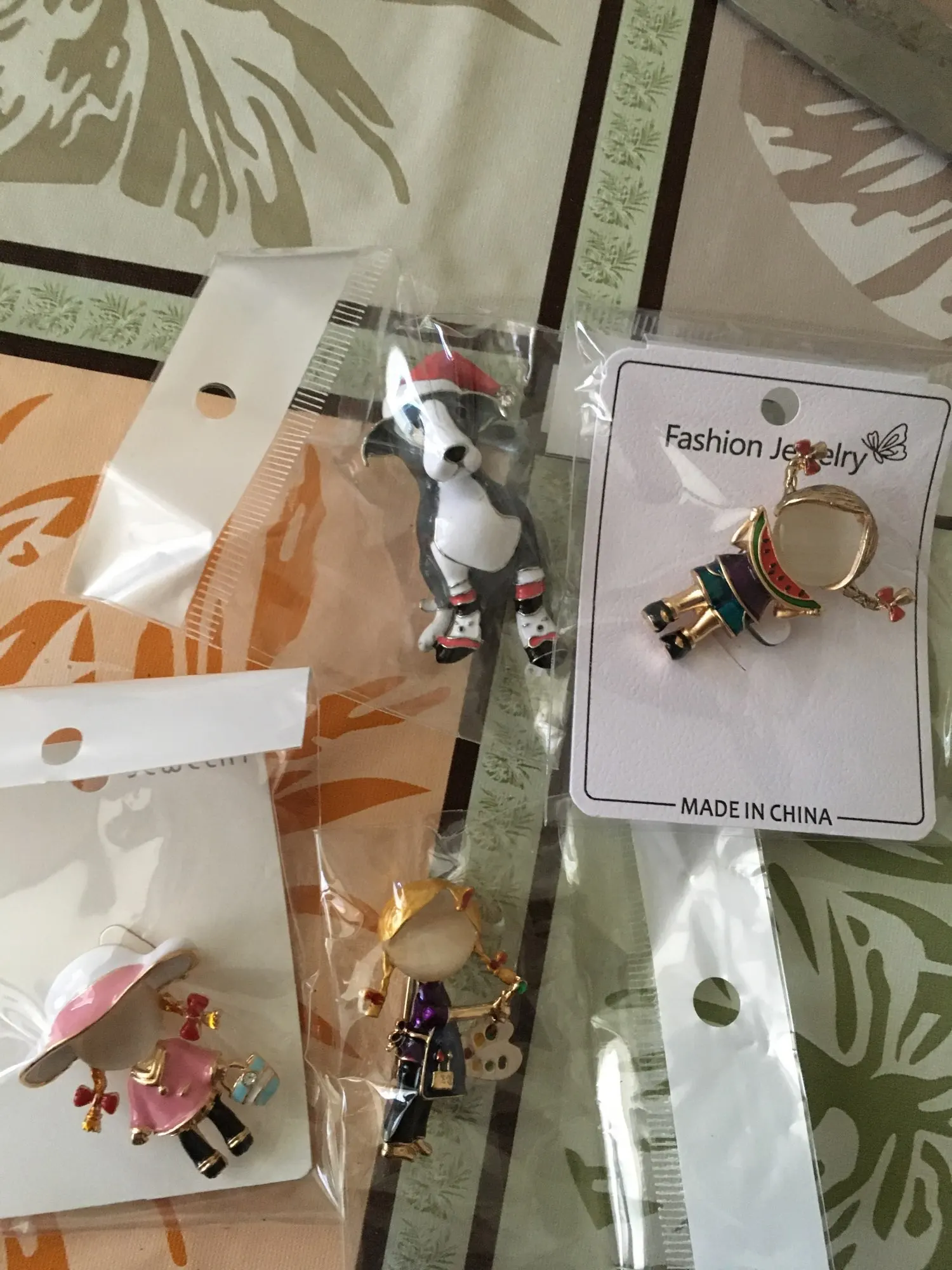 Броши отличные, дошли за месяц. Качество хорошее, аккуратное исполнение, брошь-собаку можно носить на шнурке как подвеску - есть петелька. Булавки хорошие, надёжные. Не первый раз заказываю бижутерию у этого продавца, мне все нравится! Рекомендую!
