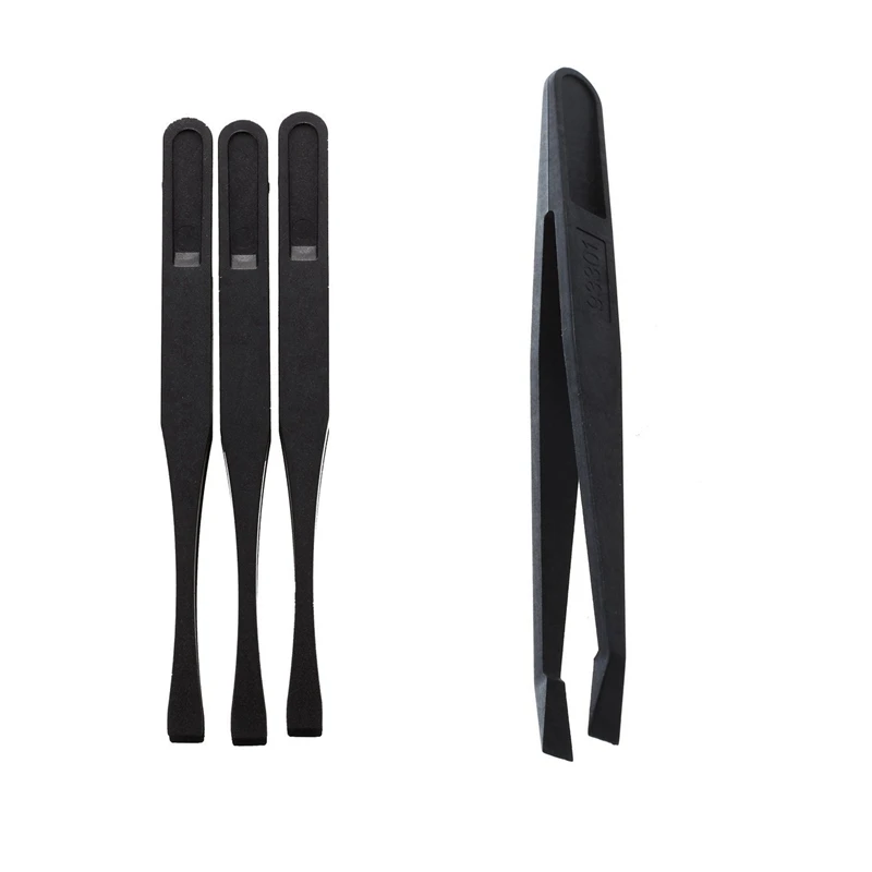 4 пинцета: 3 шт. 115 мм длинные черные пинцеты с плоским наконечником и 1 шт. ручной инструмент пластиковый Антистатический пинцет с плоским наконечником