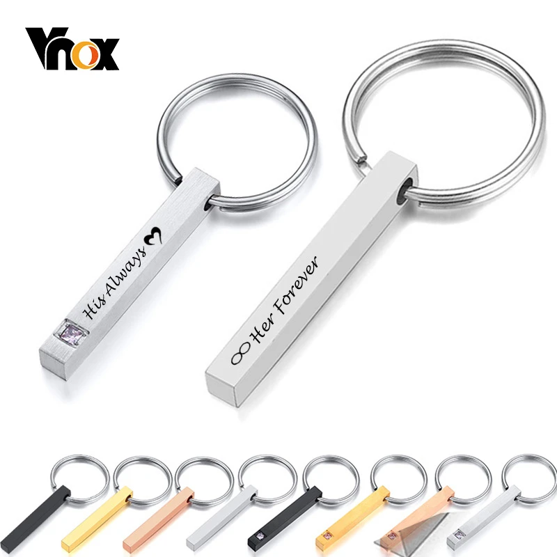 Брелок с гравировкой Vnox, минималистичный вертикальный брелок для женщин и мужчин, геометрический квадратный брелок из нержавеющей стали, унисекс, аксессуар, подарок