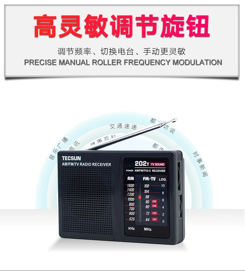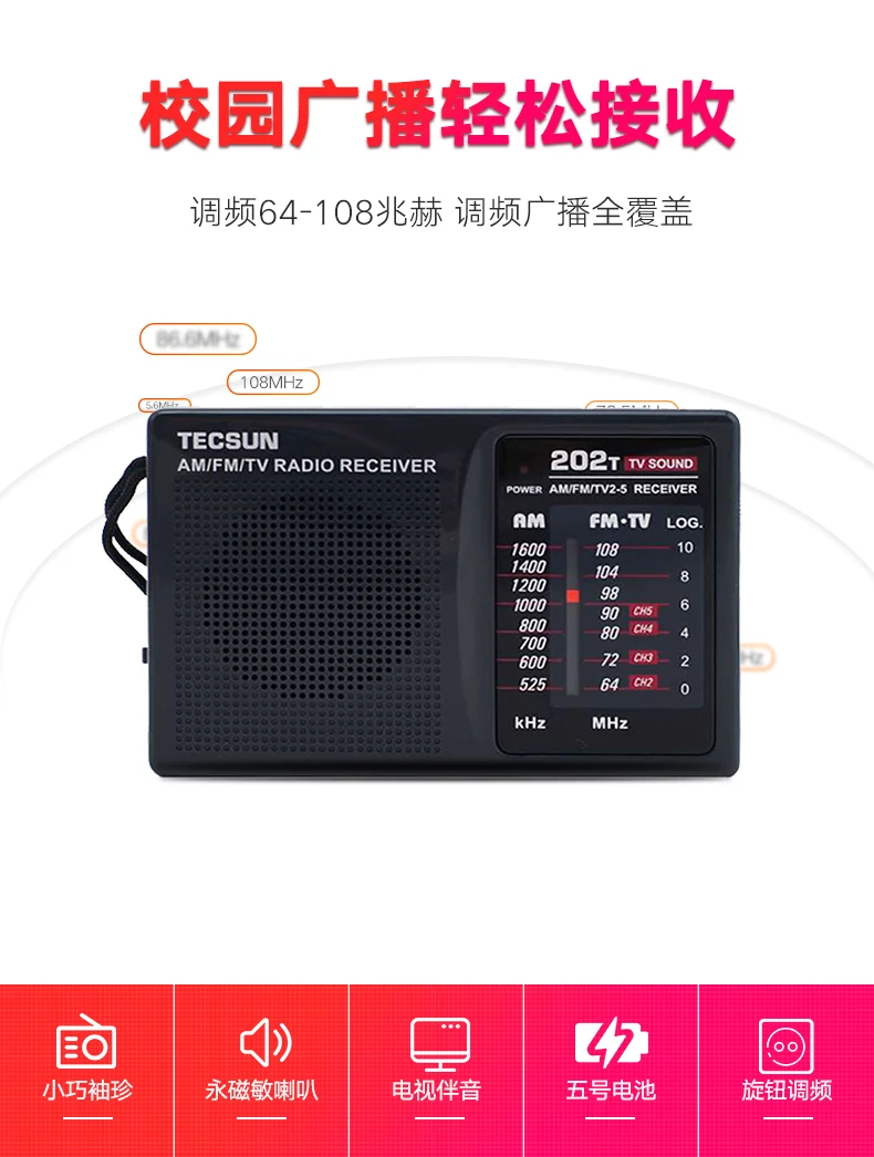 Карманный радиоприемник TECSUN R-202T AMFMTV, встроенный динамик, портативное радио для интернета, карманное Ретро Радио FMTV