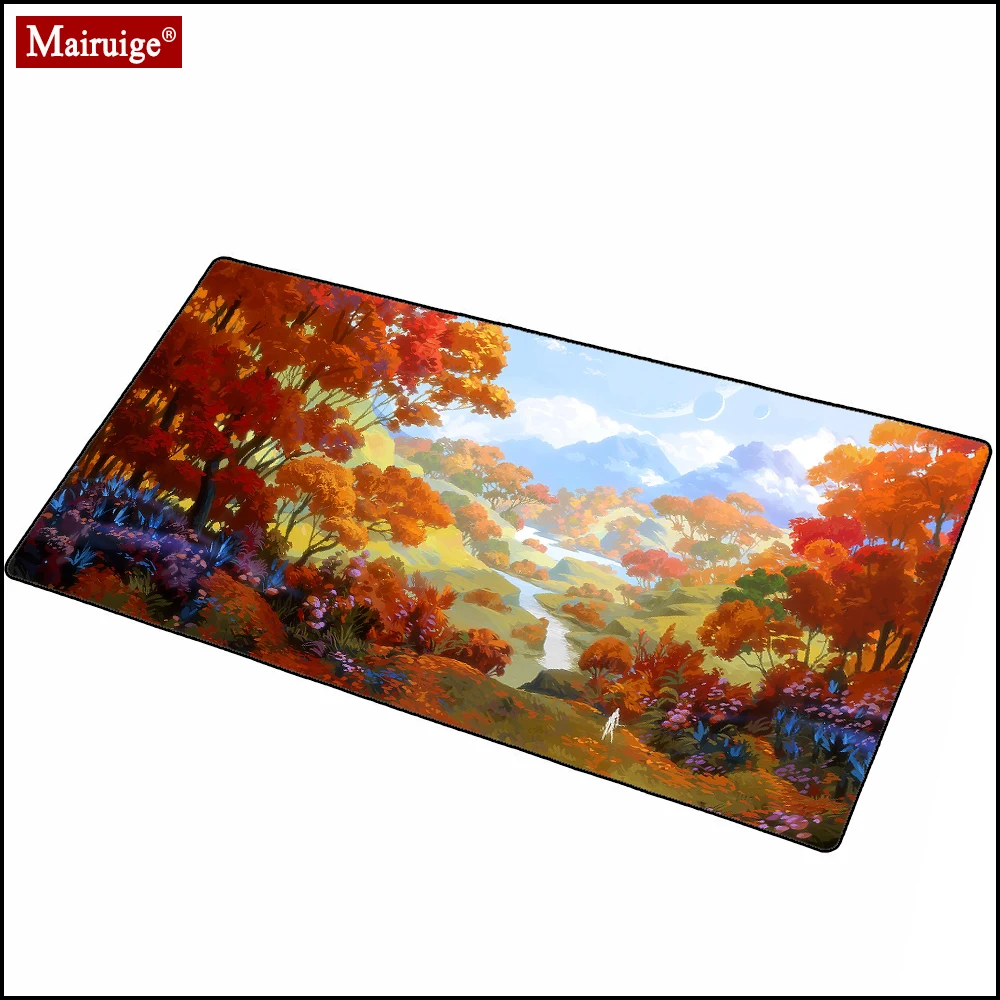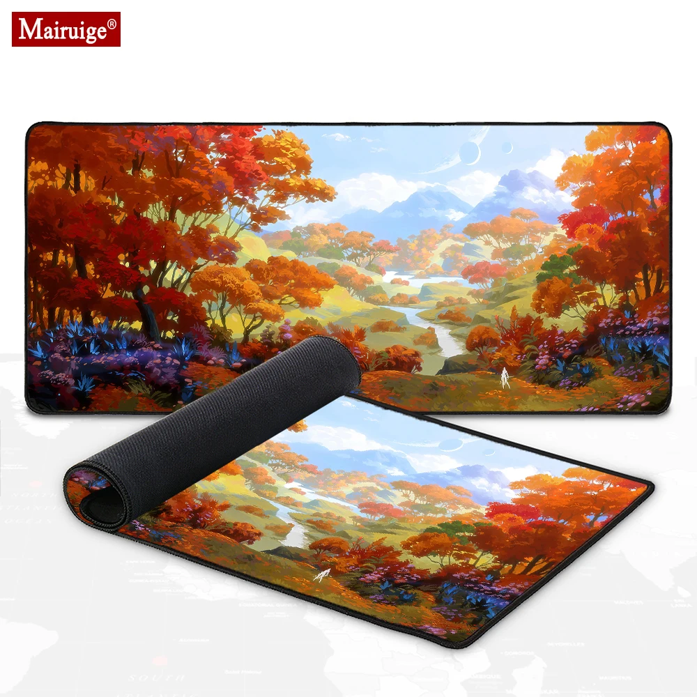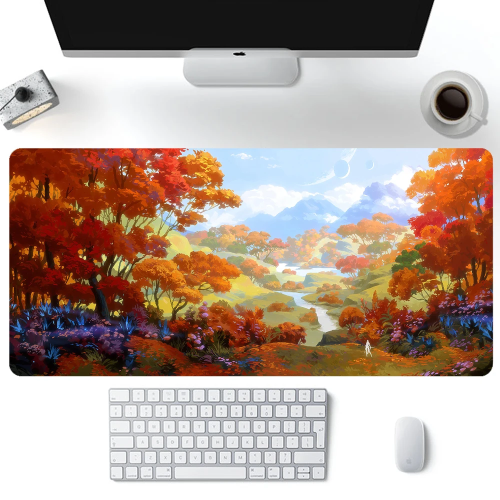 Коврик для мыши с осенним пейзажем деревьями лесом планетой горами небом LED RGB светящийся коврик для мыши XXL 90x40 см Настольный коврик DIY Индивидуальный Коврик для мыши