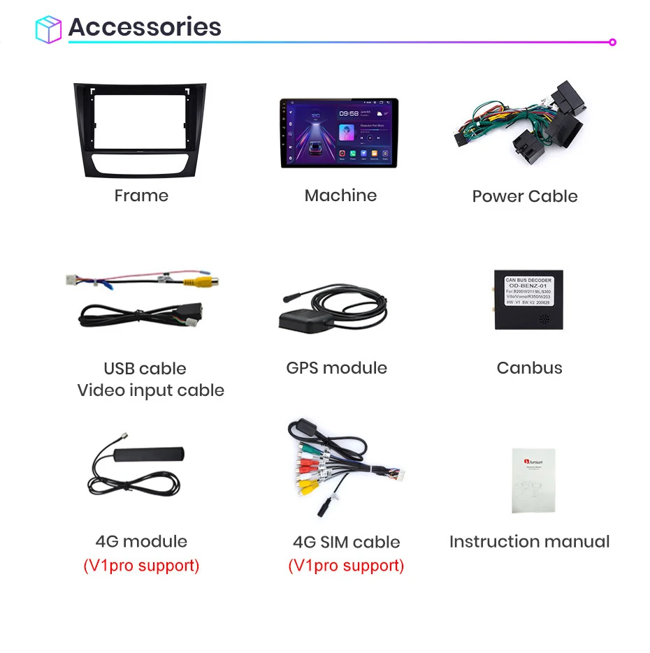 1. Штифт-штифт: Кабель питания Junsun radio' является штифтом для штифта, прост в установке;2. Встроенный Carplay/ Android Auto: Поддержка версии V1Pro, просто используйте кабель телефона, подключите его, стабильный и простой в использовании; (V1 поддерживает только Android Auto, но нужно покупать; V1C не поддерживает)3. Поддержка подголовника: только поддержка версии Junsun V1;