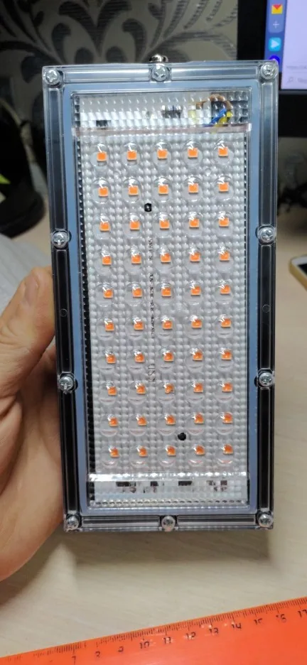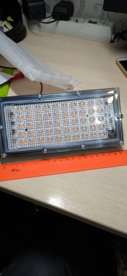Супер быстрая доставка. До Краснодара за 6 дней из Китая-вау! Очень ярко светят. Растениям самое то. Заказывал 2 шт. Сделано добротно в плане герметичности. Герметик по периметру, кабель выходит наружу через резиновое уплотнение и закручено все винтами. Сзади нет теплоотвода. Нужно самому что-то колхозить. Включал на 1 минуту. Ощутимо греется. Доставка и отправка быстрая - выше всех похвал. Продавец молодчина. Все бы так. Товар за эту цену прекрасный, только доделать теплоотвод. Рекомендую.