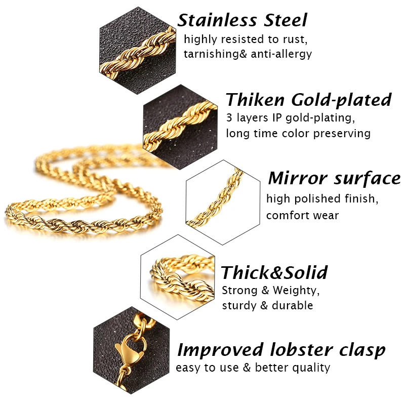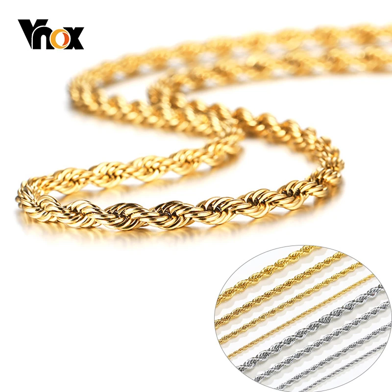 Веревка Vnox 2345 мм, цепочка на шею для мужчин, Женская Глянцевая плетеная цепочка из нержавеющей стали, удобная повседневная, унисекс, звенья на шею 16-36 дюймов