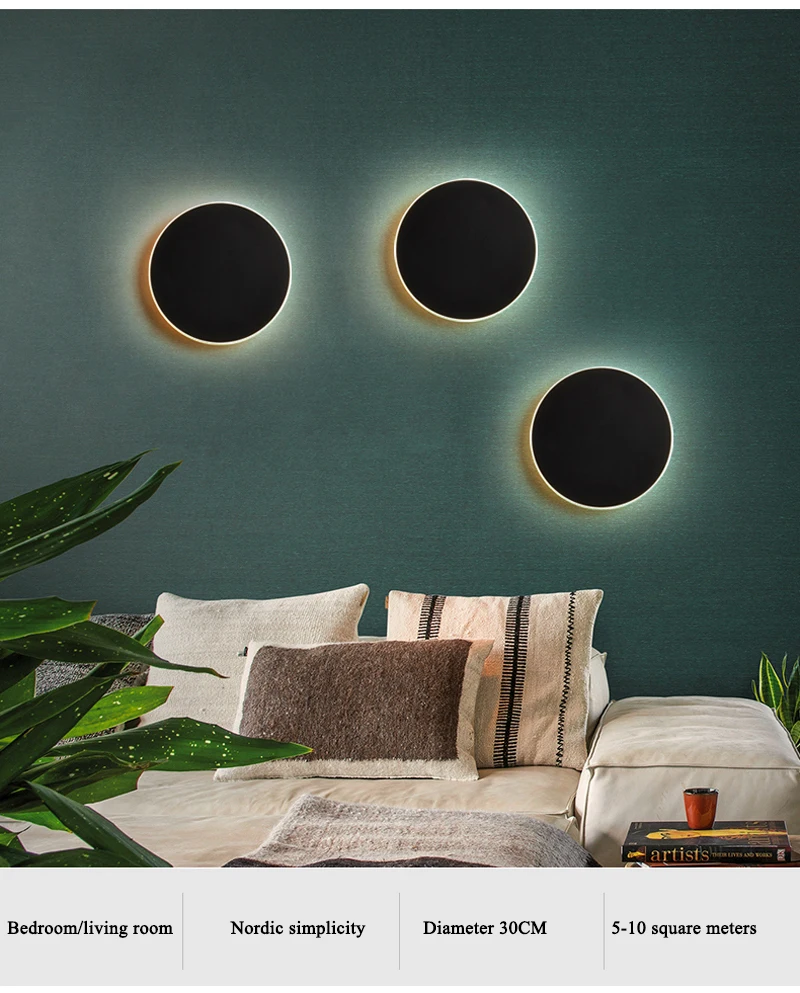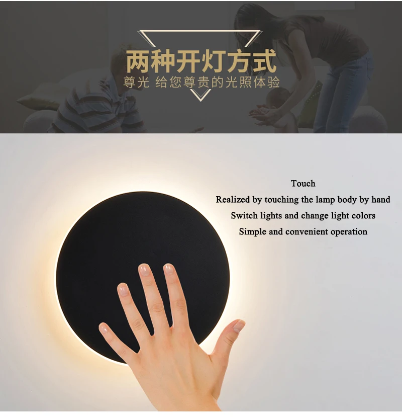 Современная акриловая круглая настенная лампа, сенсорный светодиодный светильник черного и белого цвета для прикроватной лестницы, украшения спальни