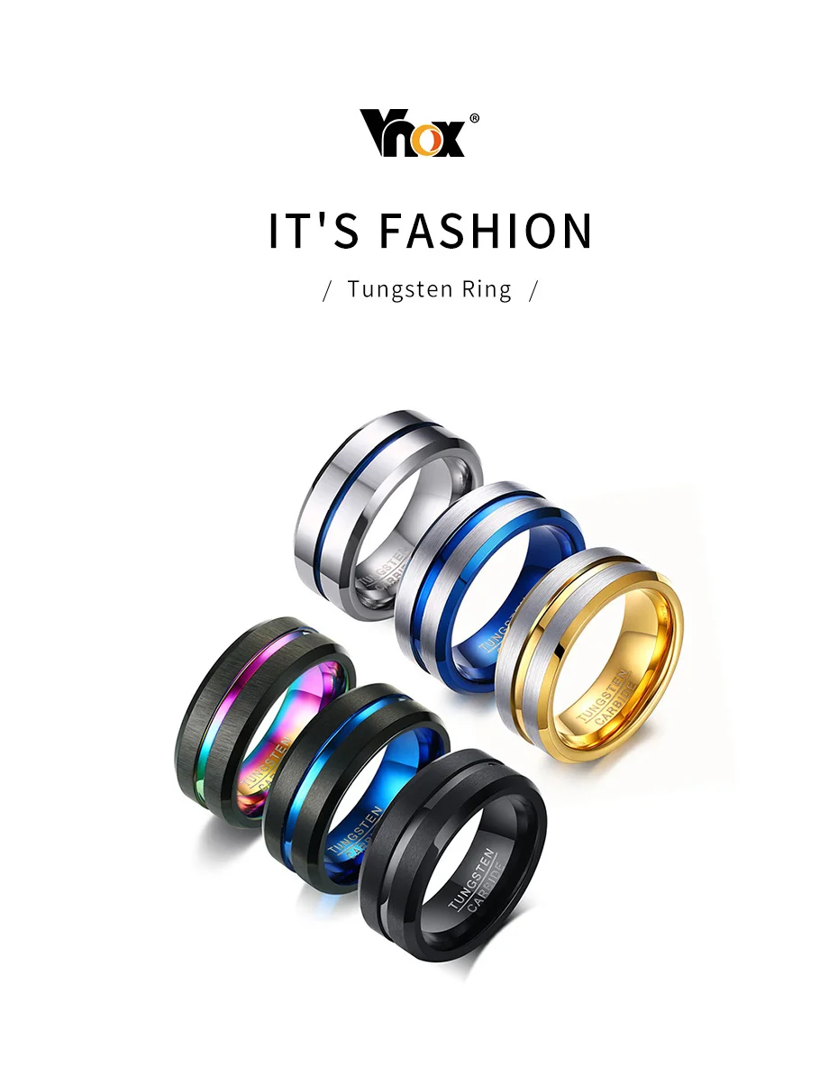 Vnox простое мужское кольцо вольфрамовое обручальное кольцо цвета р...