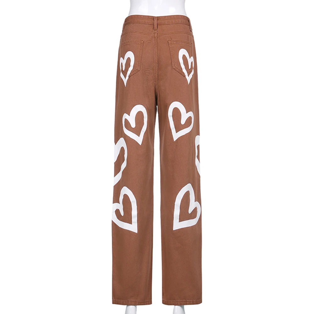 Женские джинсы с высокой талией, мешковатые брюки, повседневные широкие брюки с принтом бабочек, джинсовая уличная одежда, женские брюки