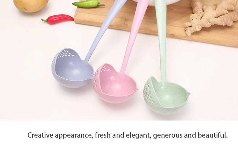 2 в 1 суповая ложка ложки с длинной ручкой, Кухня фильтр твердых Цв...