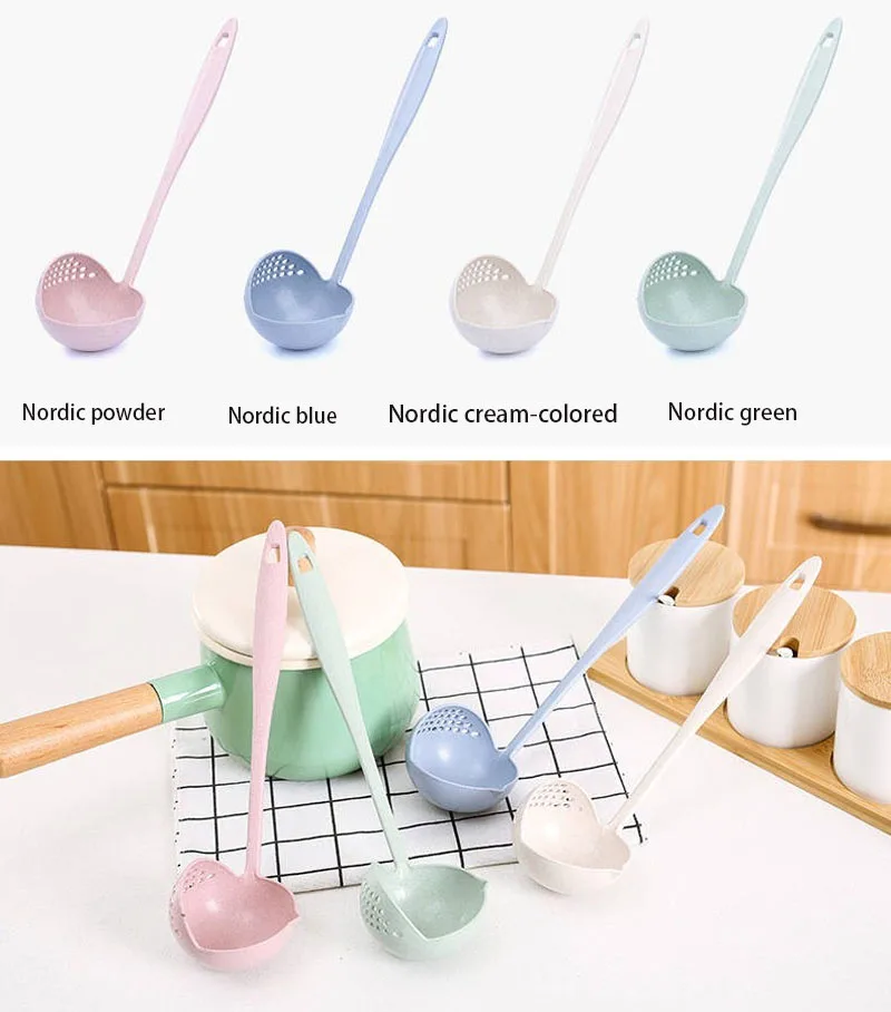 Скандинавский минималистский стиль однотонная длинная ручка термостойкая пшеничная солома милые ложки ложки для хлопьев домашняя кухня антипригарный пластиковый фильтр кухонная многофункциональная ложка 2 в 1
