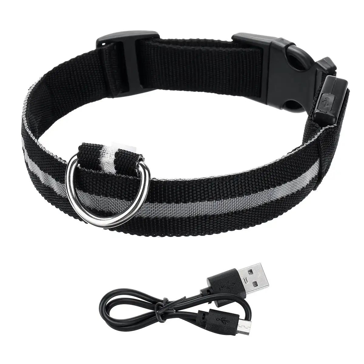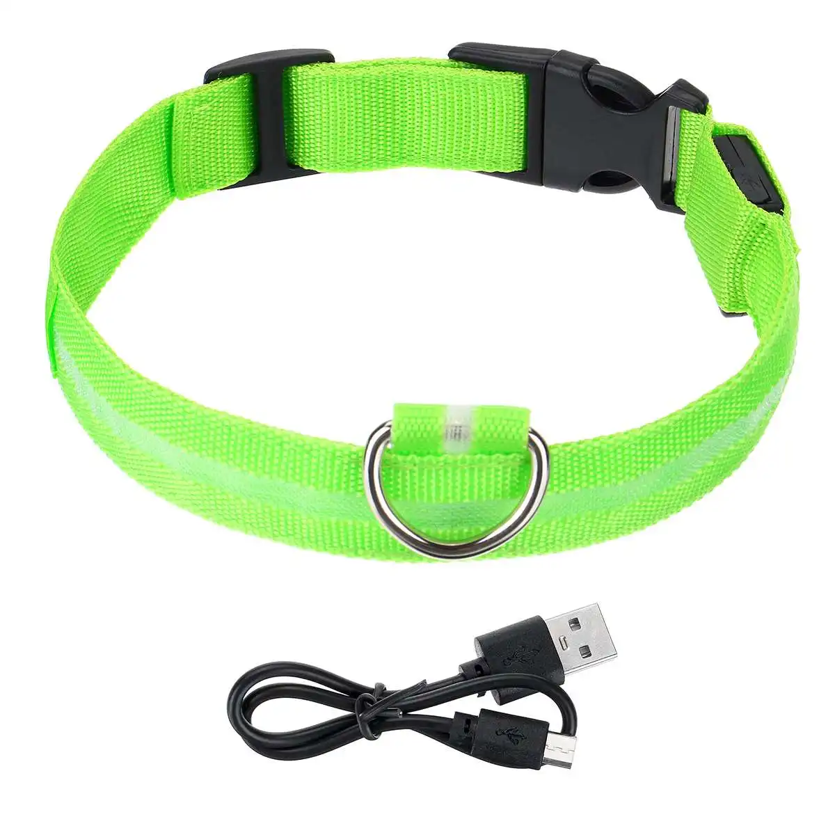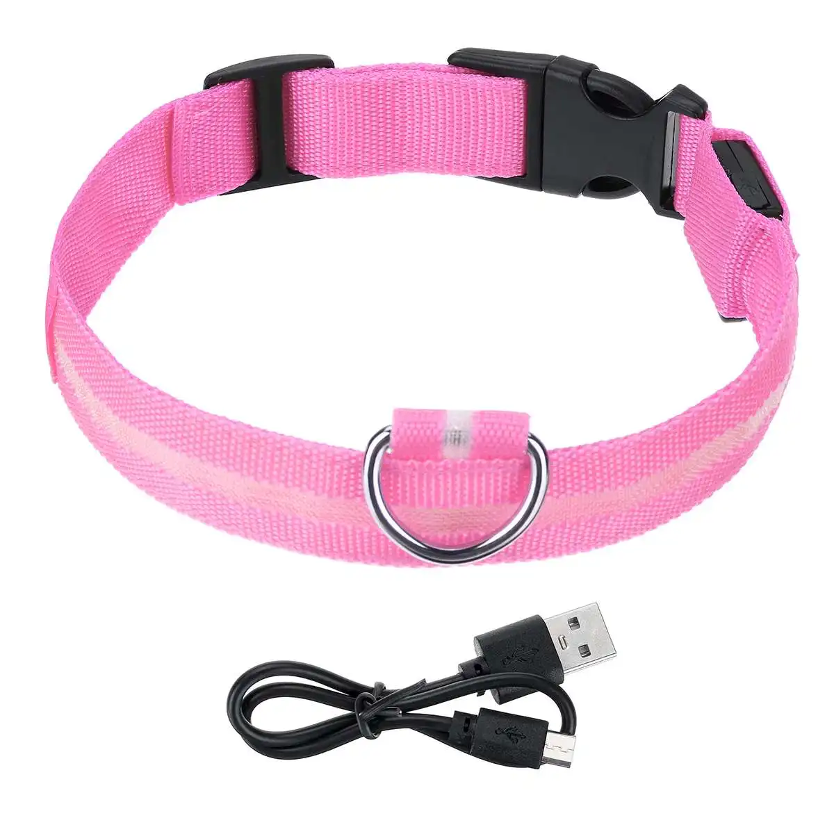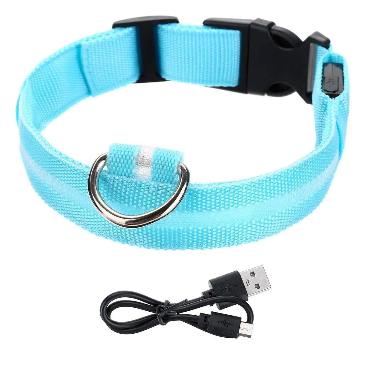 Ошейник для собак с USB-зарядкой, перезаряжаемый светодиодный фсветильник рь, нейлоновый светящийся мигающий светящийся ошейник для домашних питомцев, светодиодный чная безопасность