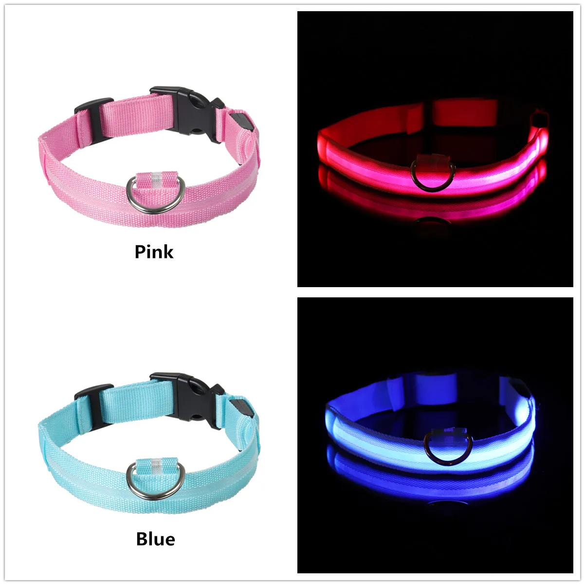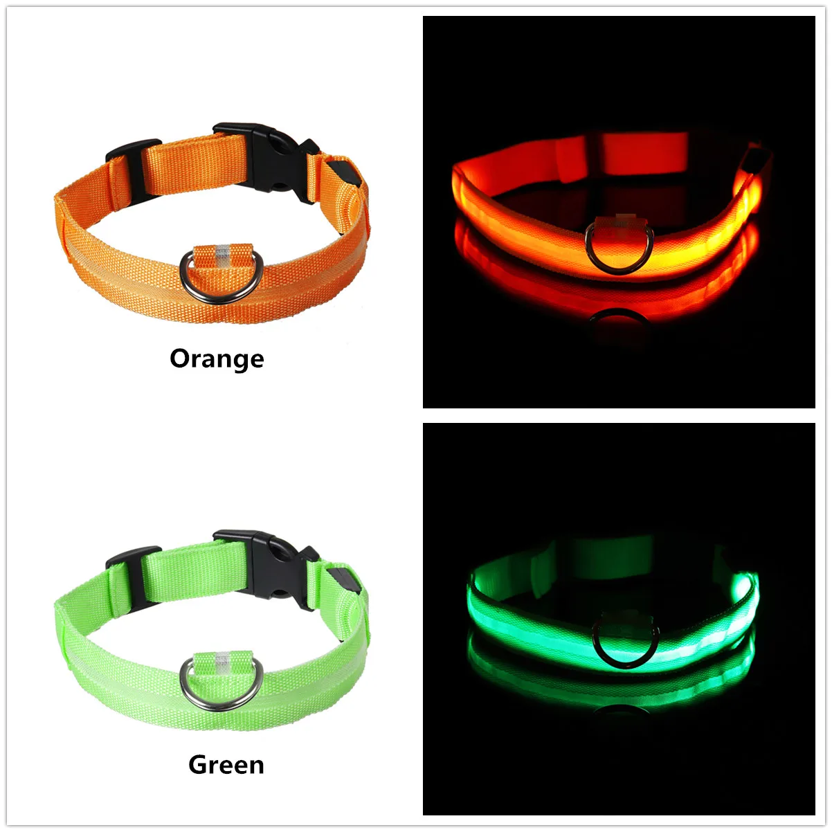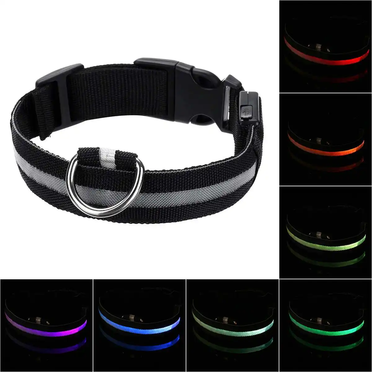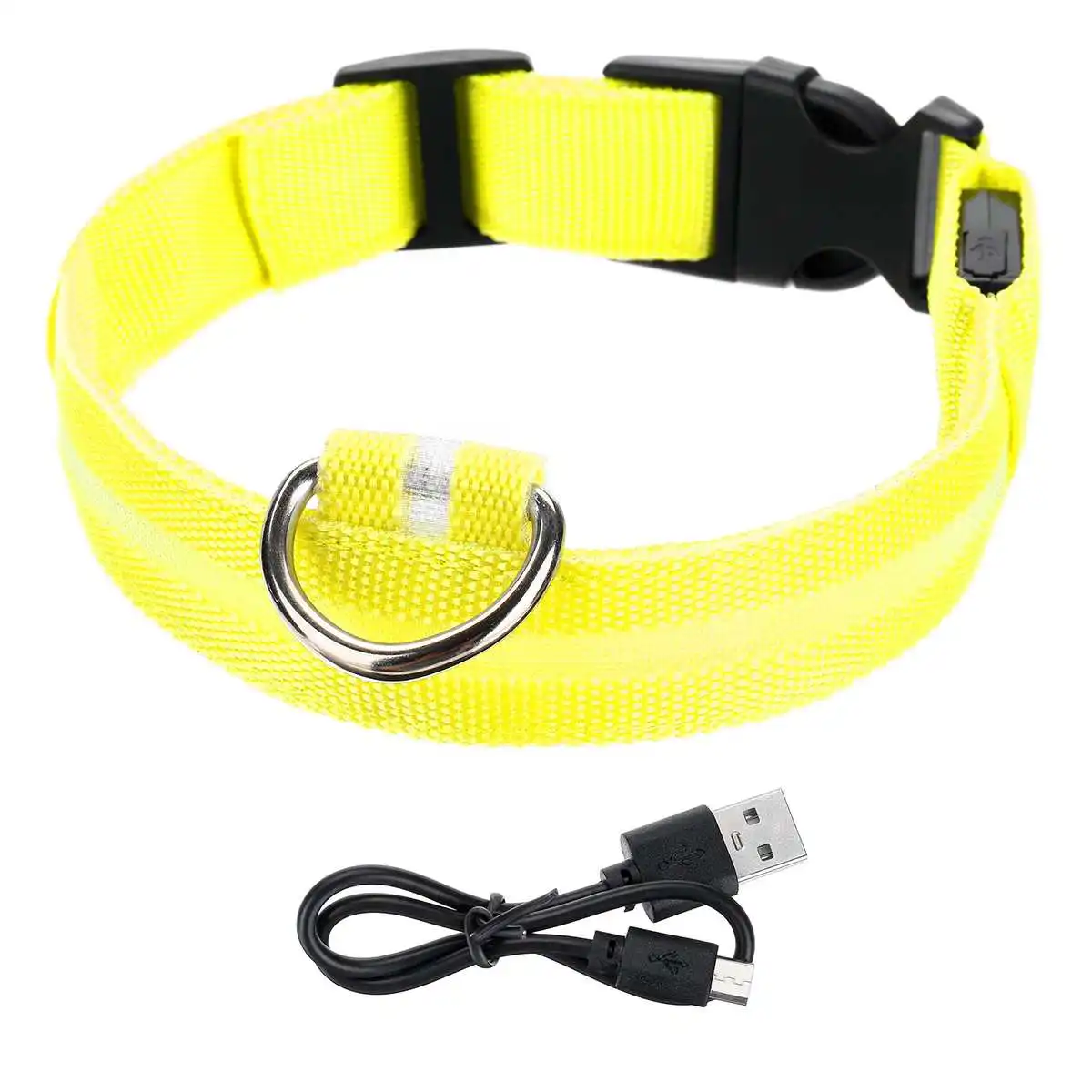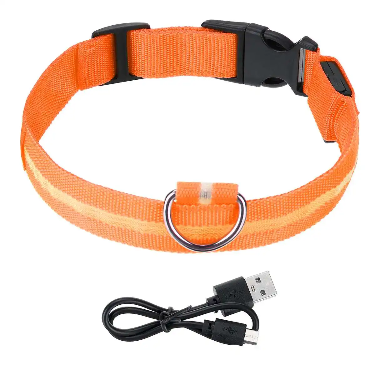 Ошейник для собак с USB-зарядкой, перезаряжаемый светодиодный фсветильник рь, нейлоновый светящийся мигающий светящийся ошейник для домашних питомцев, светодиодный чная безопасность