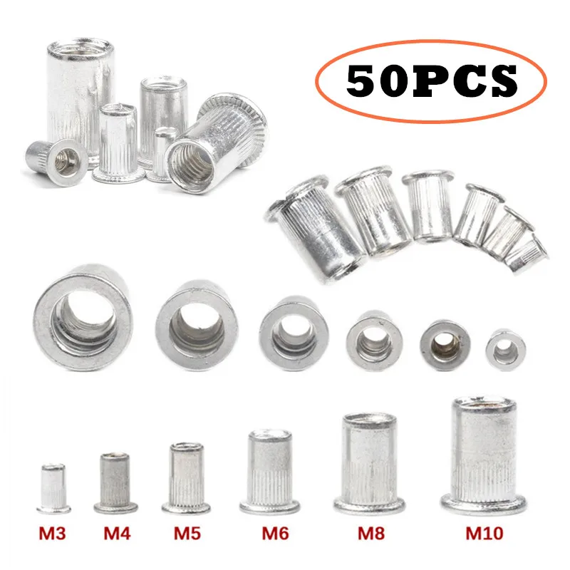 Заклепочные гайки M3 M4 M5 M6 M8 M10, 200 шт.компл., алюминиевые за...