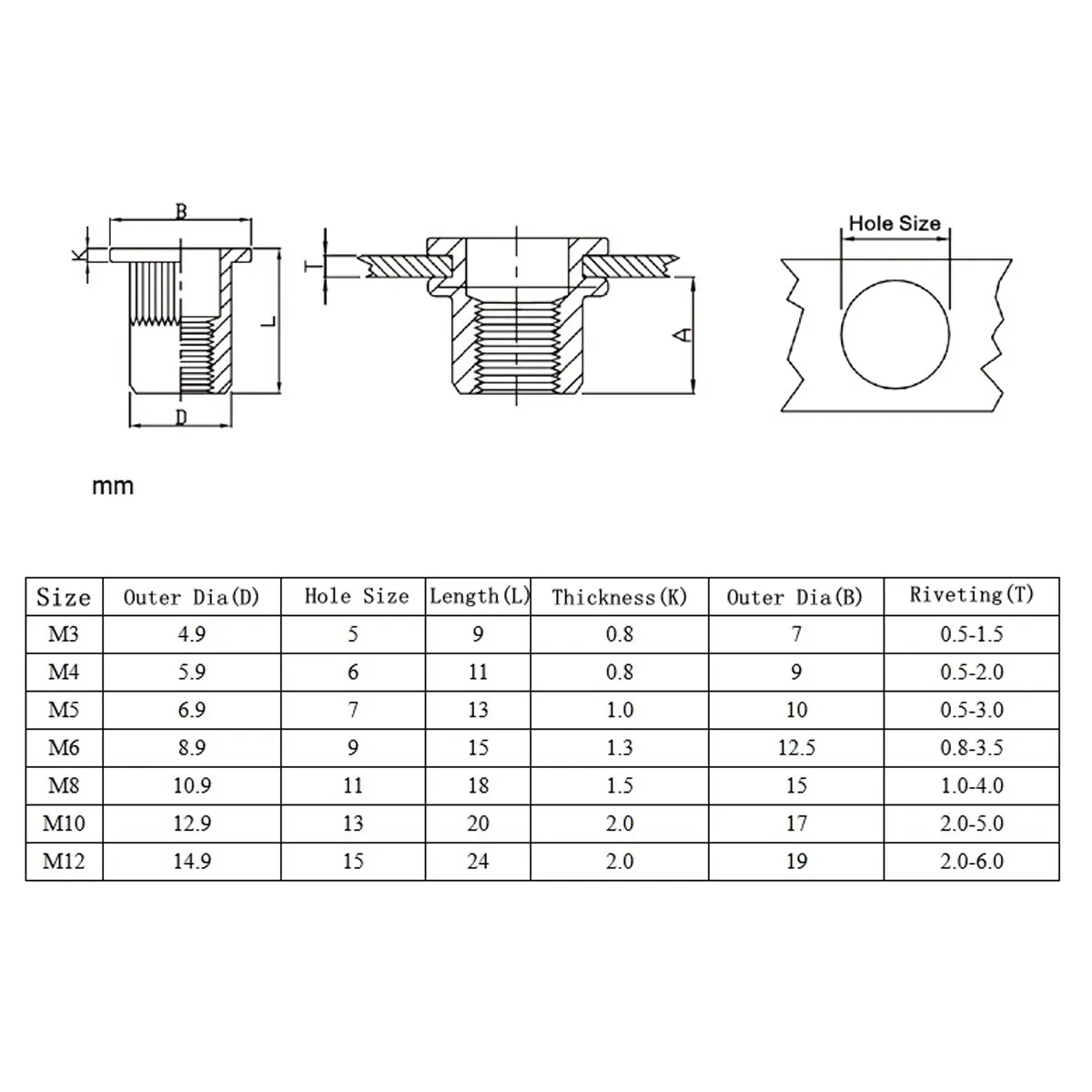 SizeM3 M4 M5 M6 M8 M10